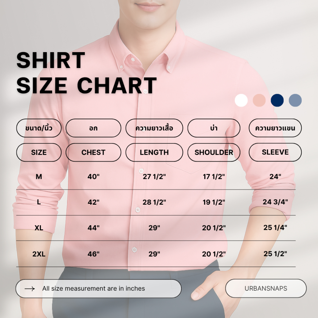 UrbanSNAPS "WEEKDAY SHIRT" Oxford Slimfit Long-Sleeve Pink (เสื้อเชิ้ตแขนยาว สีชมพู) รหัส M-SH026PK
