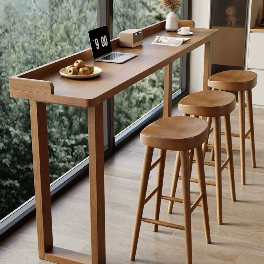 โต๊ะบาร์ไม้พร้อมเก้าอี้ โต๊ะทำงานบ้านสไตล์มินิมอล แถบแคบโต๊ะบาร์และเก้าอี้ เหมาะสำหรับระเบียง/คาเฟ่/บาร์