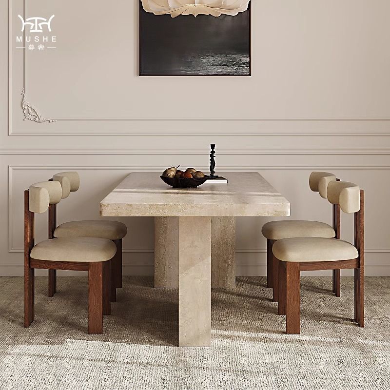 โต๊ะรับประทานอาหารหินชนวนย้อนยุคฝรั่งเศส เก้าอี้ อพาร์ตเมนต์ขนาดเล็กทรงสี่เหลี่ยมผืนผ้า
