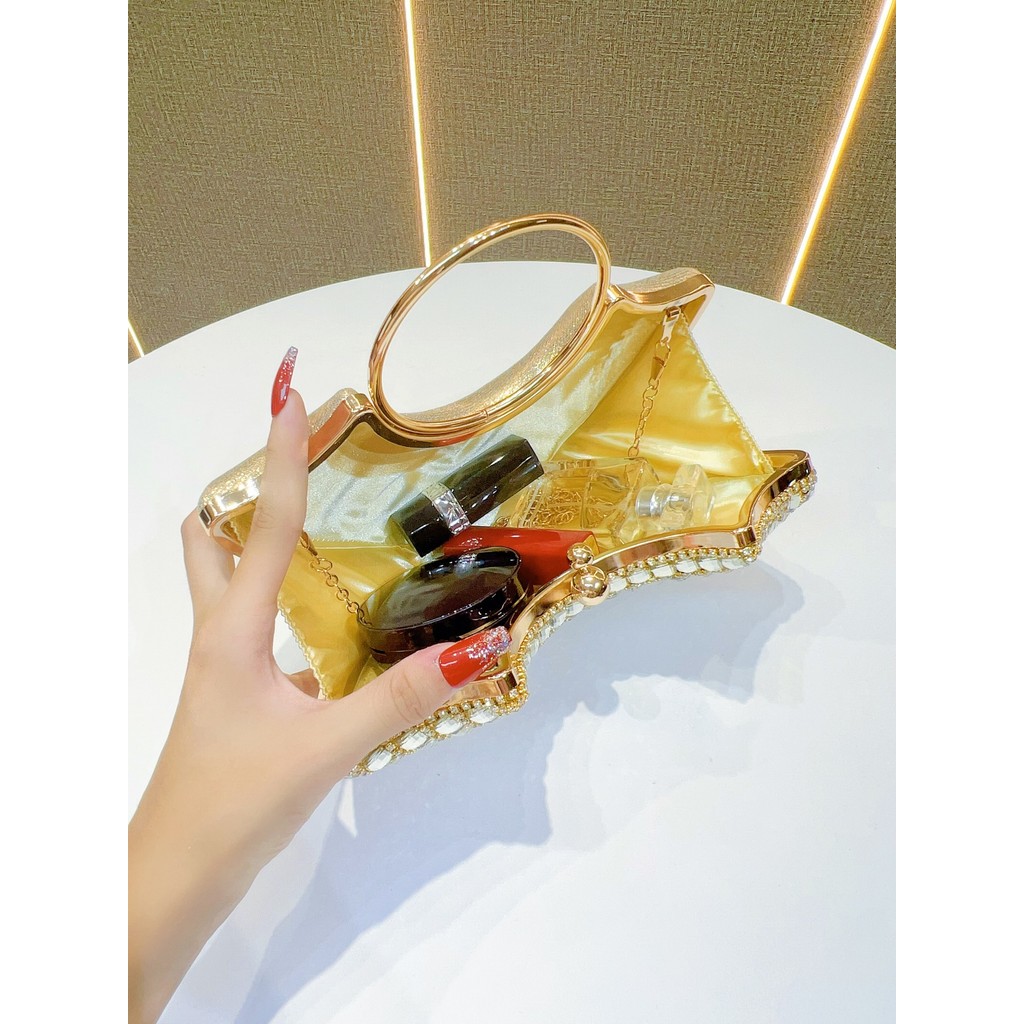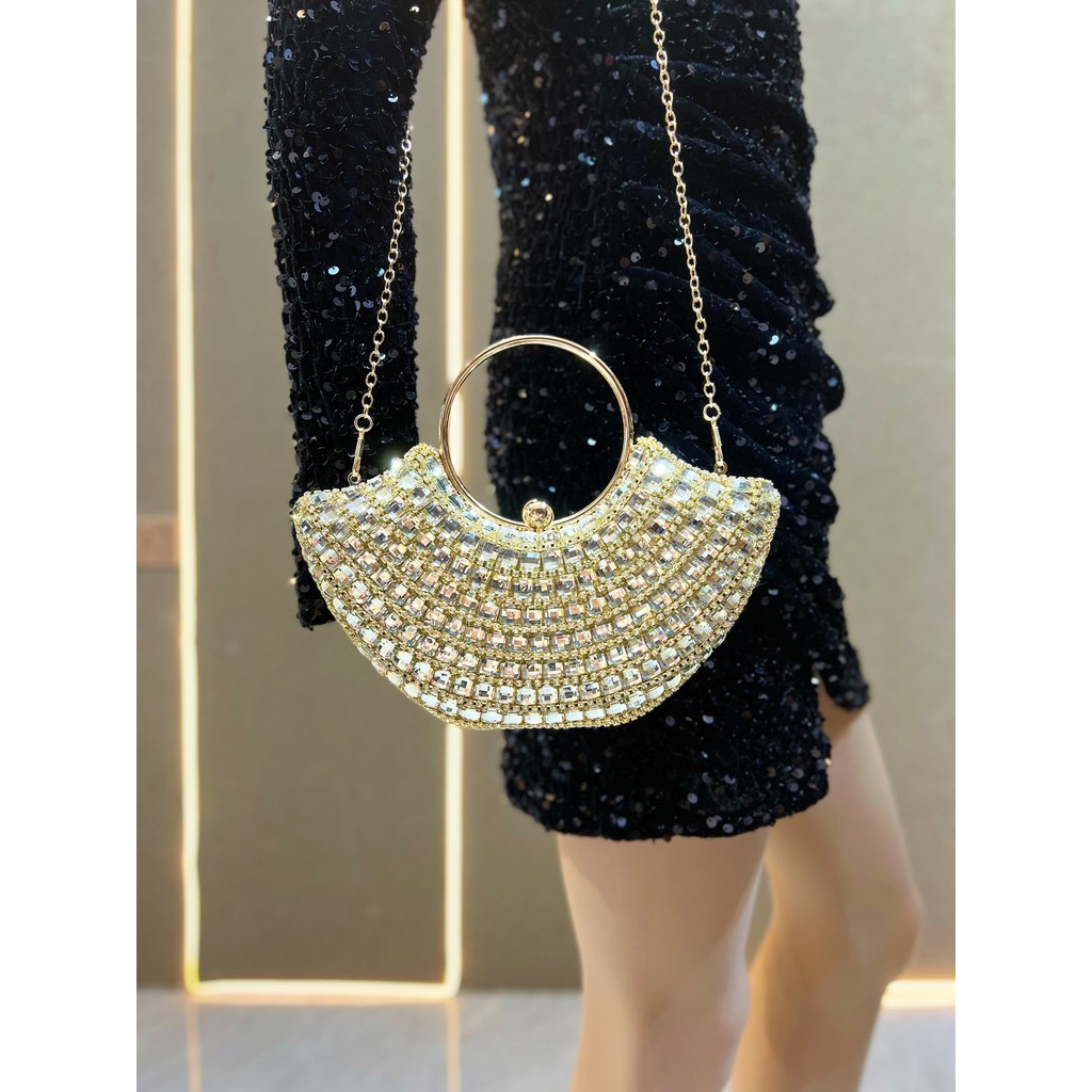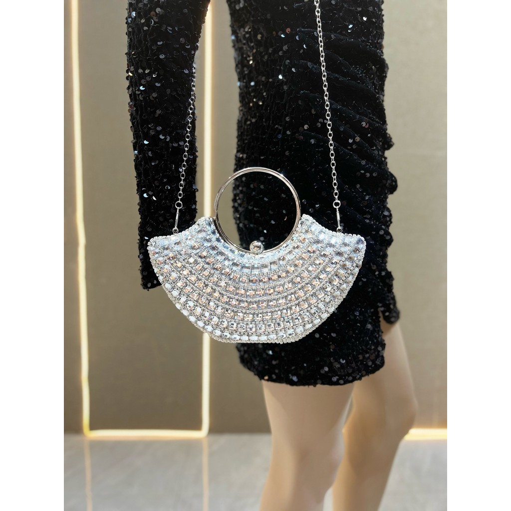 【จัดส่งฟรี】สไตล์เพชร เรียงราย เพชร ประดับ ถือ สะพาย งานเลี้ยง ปาร์ตี้ โอกาส ใช้ประจำวัน คลัทช์ เอวด้าน แฮนด์แคร์ สะพายข้าง โซ่