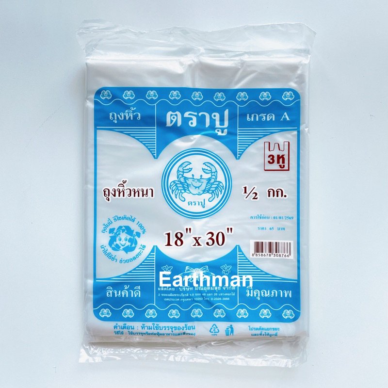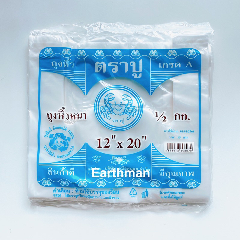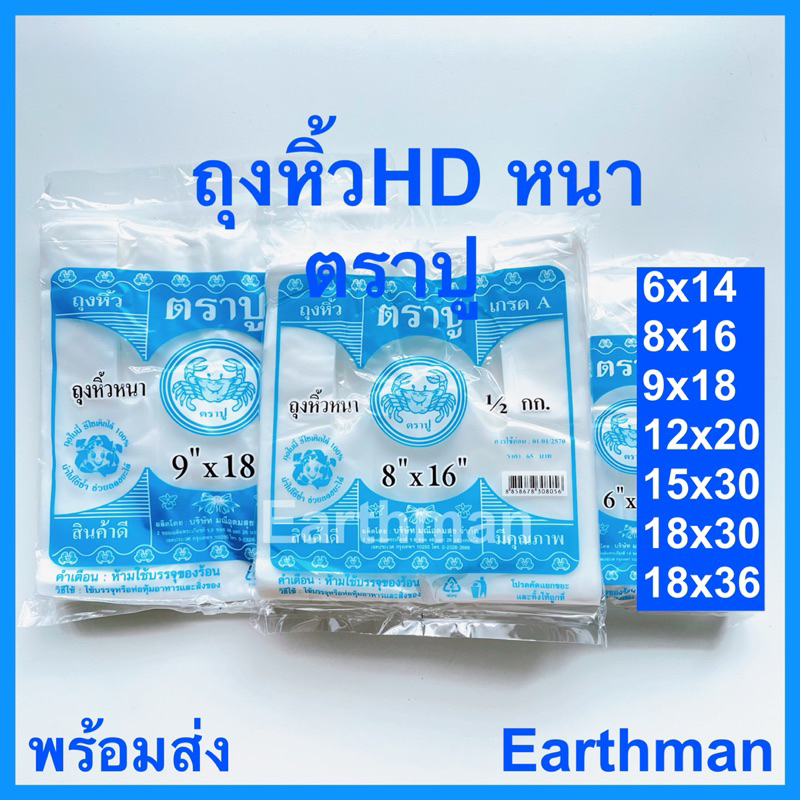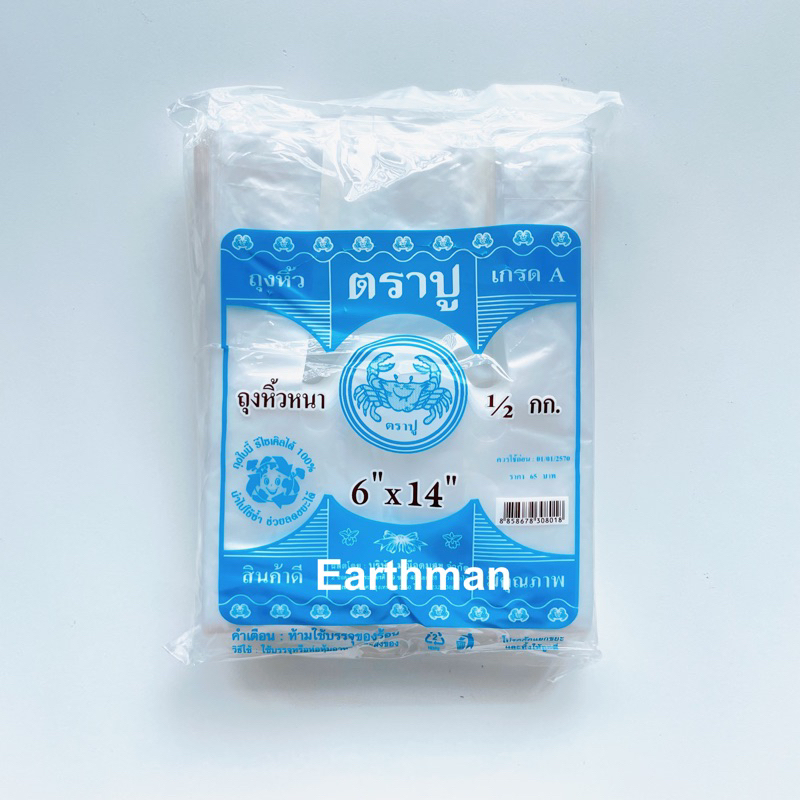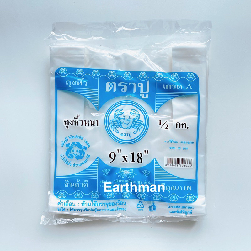 🎉มาใหม่ !!! 🎉ถุงหูหิ้ว HD 🦀 ตราปู 🦀 เกรด A แบบหนา เหนียว แพ็คสีฟ้า น้ำหนัก 500 กรัม ครึ่งโล_Earthman