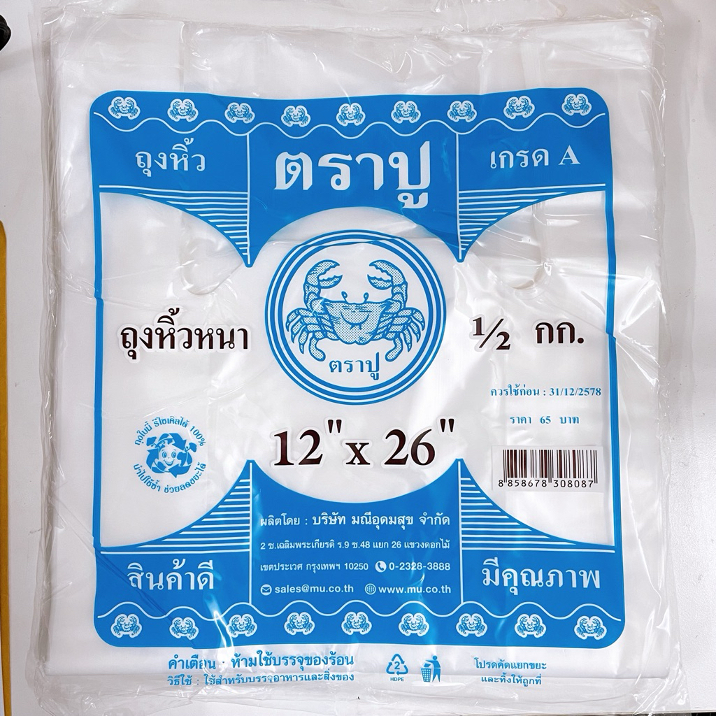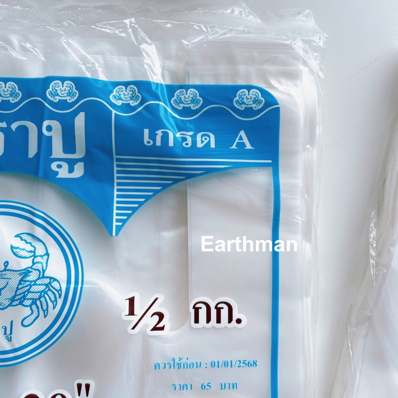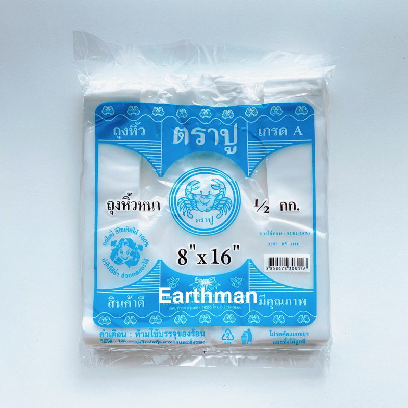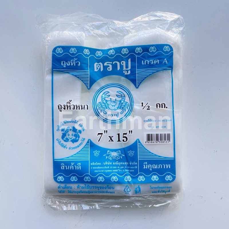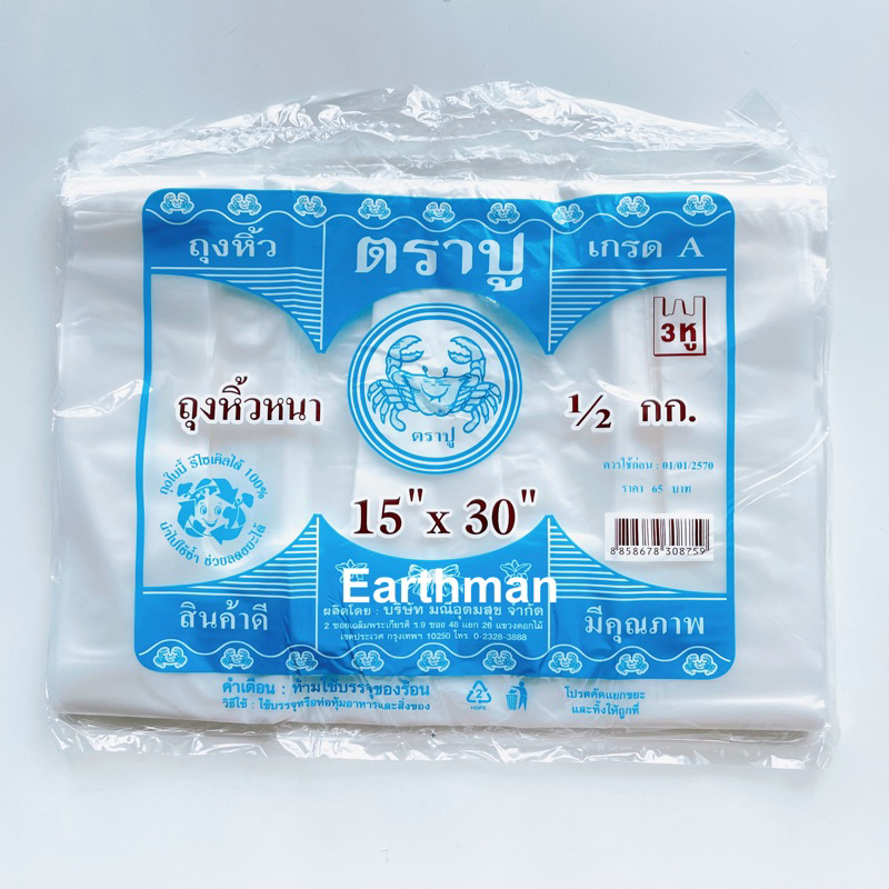 🎉มาใหม่ !!! 🎉ถุงหูหิ้ว HD 🦀 ตราปู 🦀 เกรด A แบบหนา เหนียว แพ็คสีฟ้า น้ำหนัก 500 กรัม ครึ่งโล_Earthman