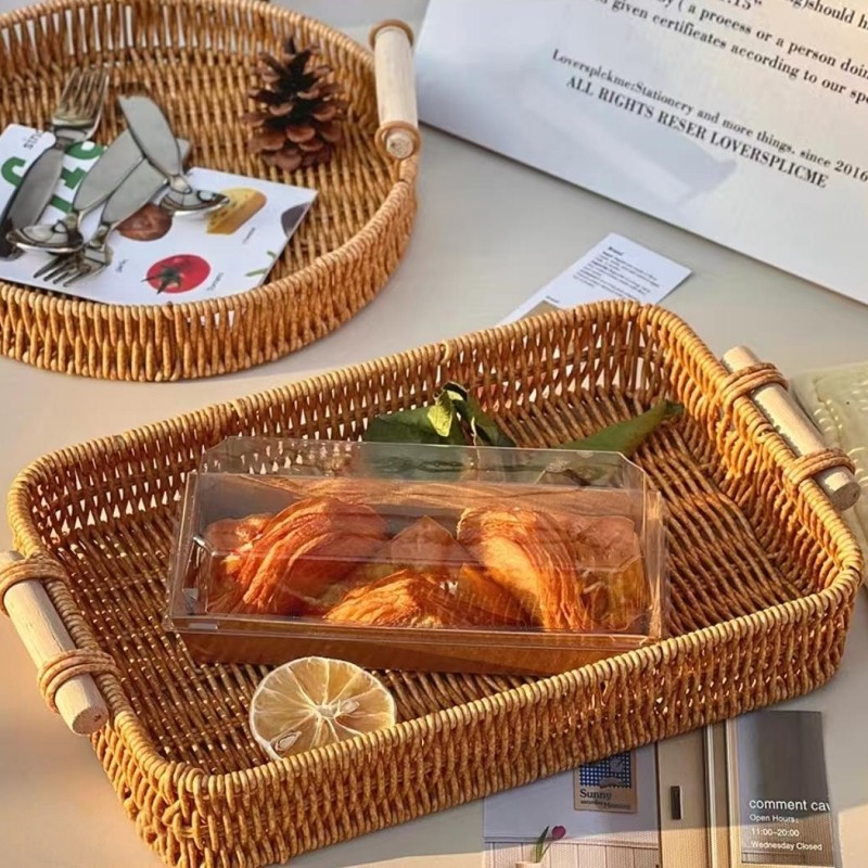 ตะกร้าหวายสาน ถาดหวายเปีย พร้อมที่จับ ถาดสี่เหลี่ยม ถาดกลม ถาดใส่ขนม ถาดขนมปัง ตะกร้าสาน ลายหวาย สําหรับใส่