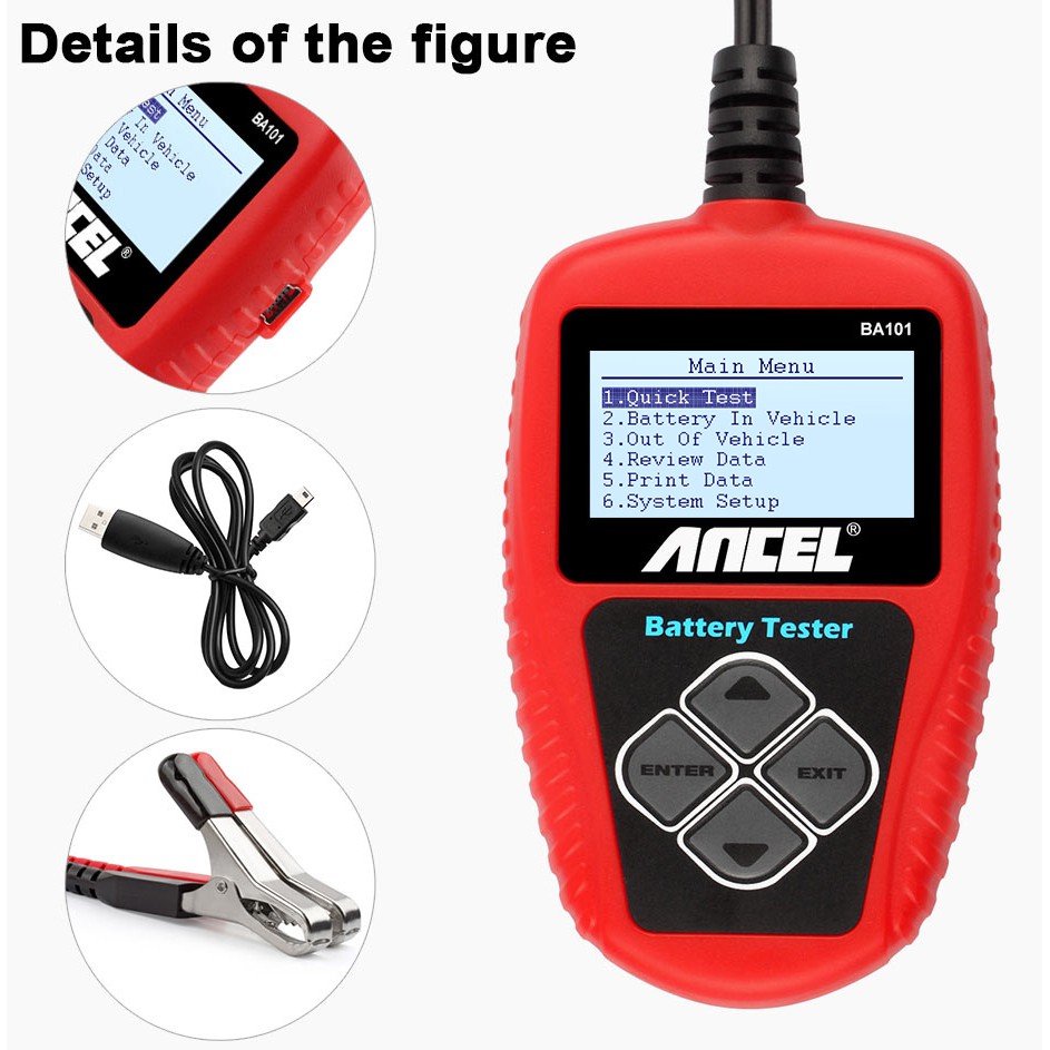 Ancel BA101 เครื่องทดสอบแบตเตอรี่ Car Battery Tester 12V เครื่องวิเคราะห์แบตเตอรี่รถยนต์ วัดค่า CCA