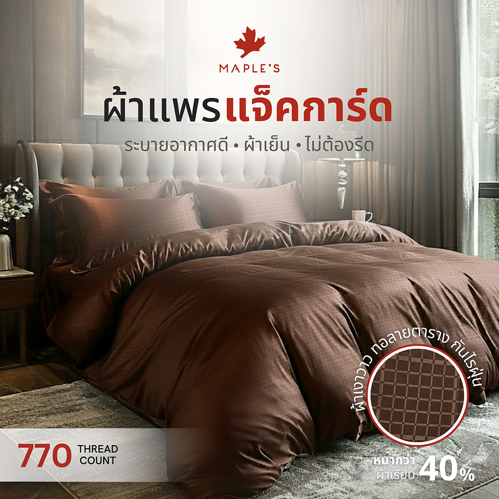 MAPLE'S ผ้าปูที่นอนรัดมุม รุ่นJacquard 770เส้น 6-10นิ้ว กันขนติด หนาแน่นกว่าผ้าเรียบ40% แจ็คการ์ด