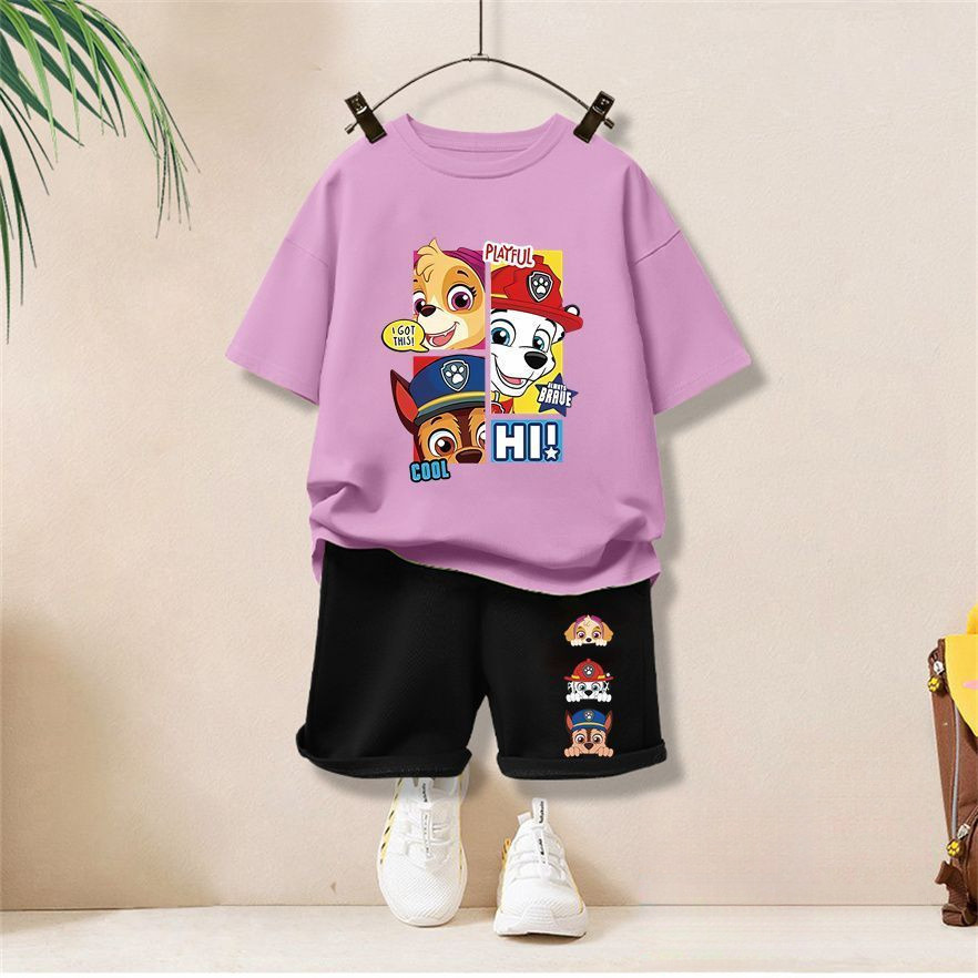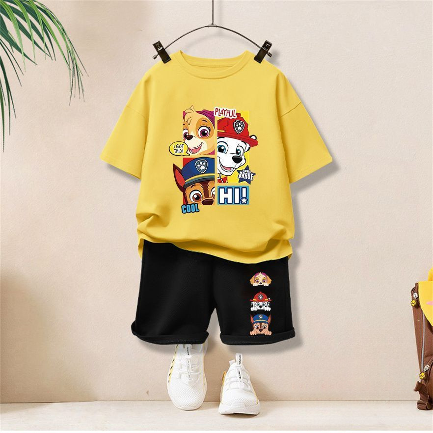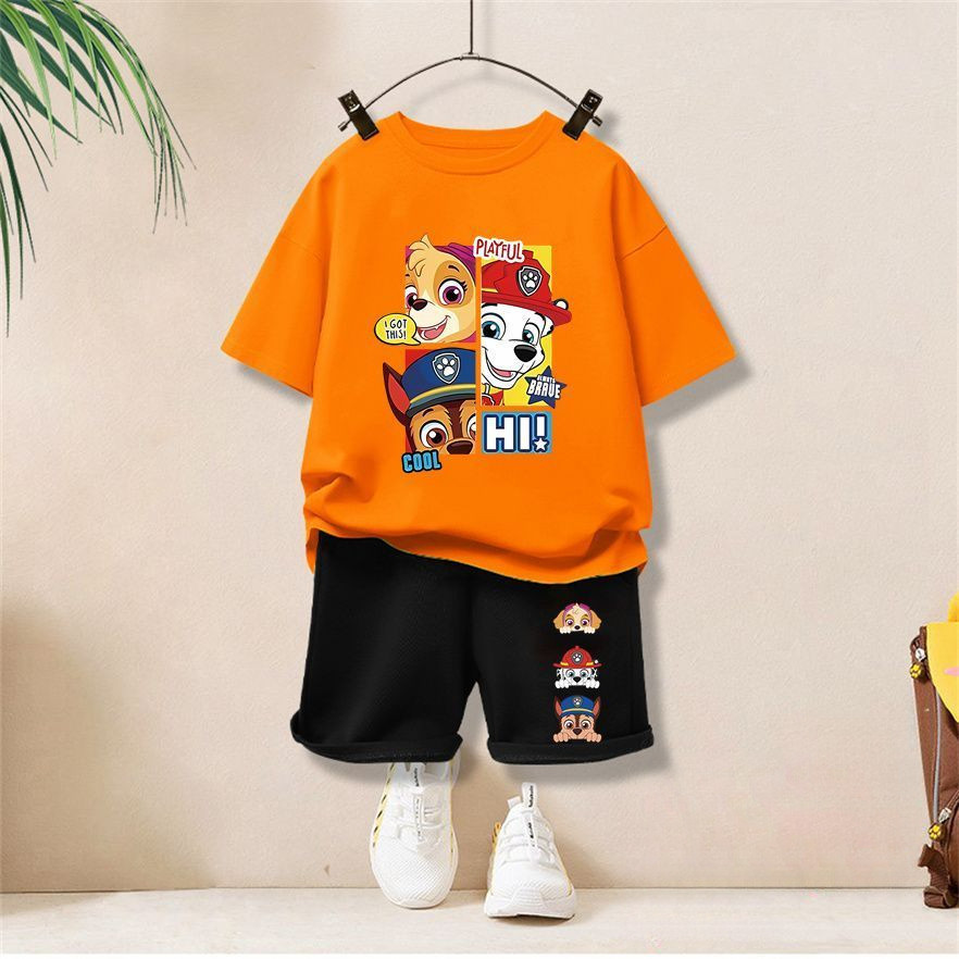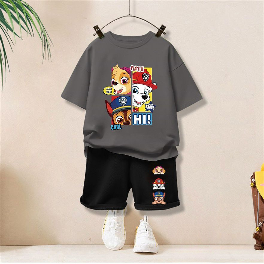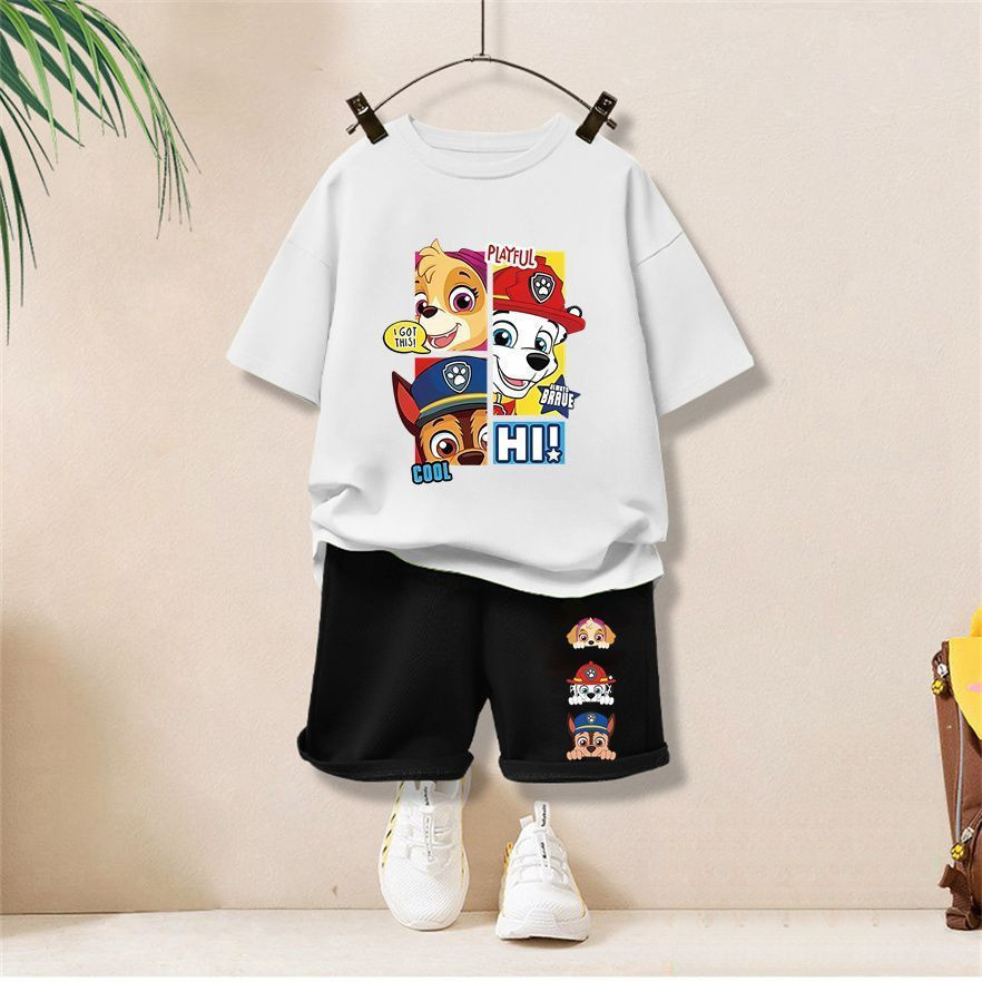 【จัดส่งไทย】2ชิ้น BOBชุดเด็กผู้ชาย 2025 ชุดแขนสั้นเด็กใหม่ ชุดคอสตูมพาวพาโทรล ชุดกีฬาสบายๆ ชุดฤดูร้อน