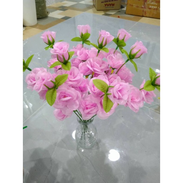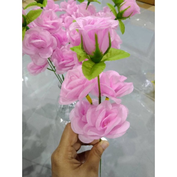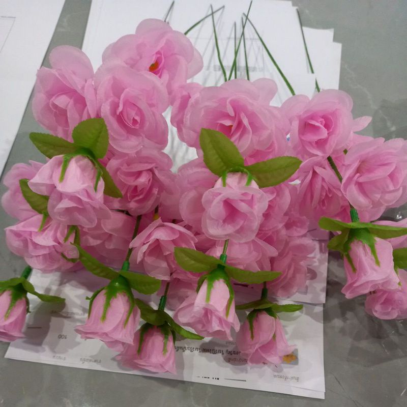 ดอกกุหลาบสีชมพูพาสเทล ตูม+บาน 1ช่อ 5ดอก ดอกกุหลาบช่อสีชมพู
