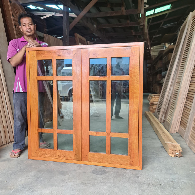 ชุดหน้าต่างบานเปิดไม้พร้อมอุปกรณ์ ไม่รวมกระจก ไม่ทำสี บานกว้าง 50,60ซม. สูง 100 ซม.(รอบใน) เลือกแบบบานได้