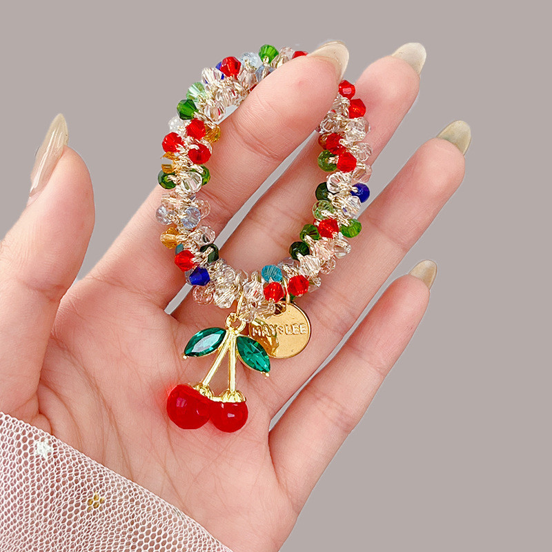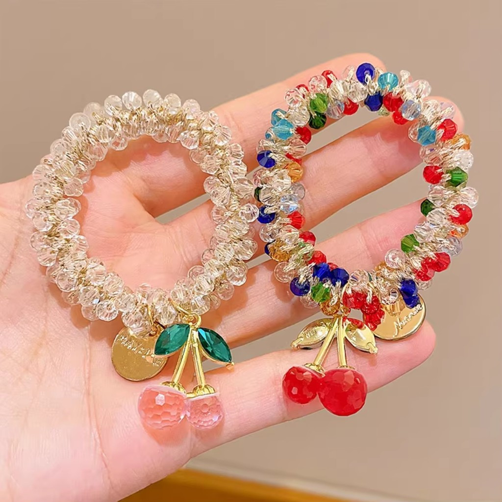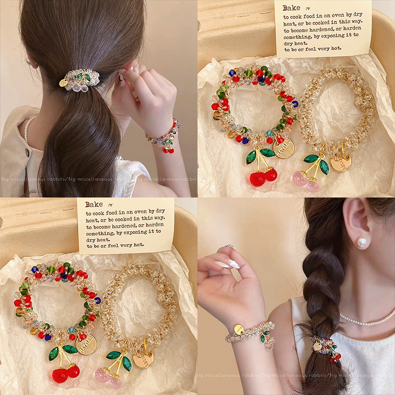 ยางรัดผมขนาดใหญ่ 2 PCS สไตล์ใหม่ สำหรับผู้หญิง พร้อมลายสีเชอร์รี่ Ankela เครื่องประดับผมสีแดงสดใส
