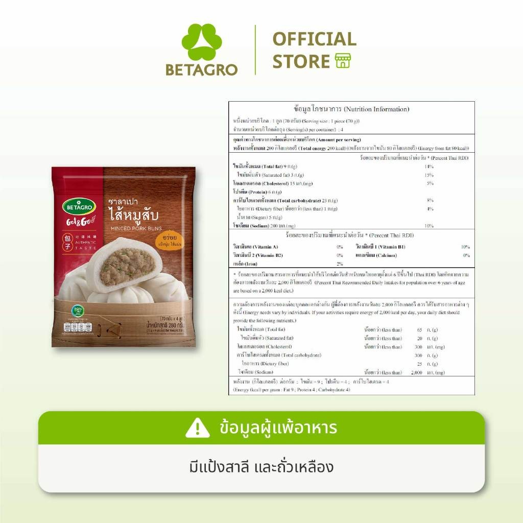 เบทาโกร ซาลาเปาไส้หมูสับ แพ็ก 4 ลูก 280 กรัม (แช่แข็ง)