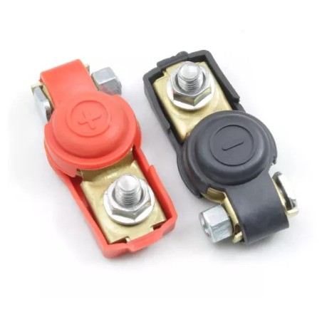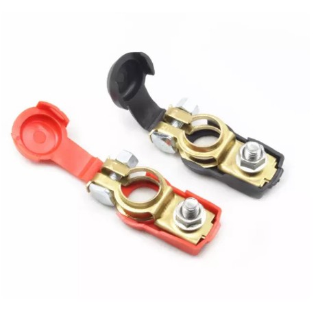 ขั้วแบตเตอรี่รถยนต์ทองเหลืองพร้อมฝาปิด 12 โวลต์ 1 คู่ ทองเหลืองแท้