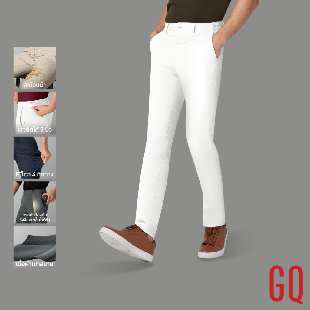 GQ Perfect Stretch Light Chino™ กางเกงชิโน ผ้ายืดเบาสบาย กางเกงขายาวสำหรับผู้ชาย สีขาว