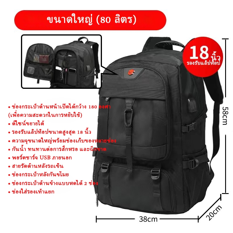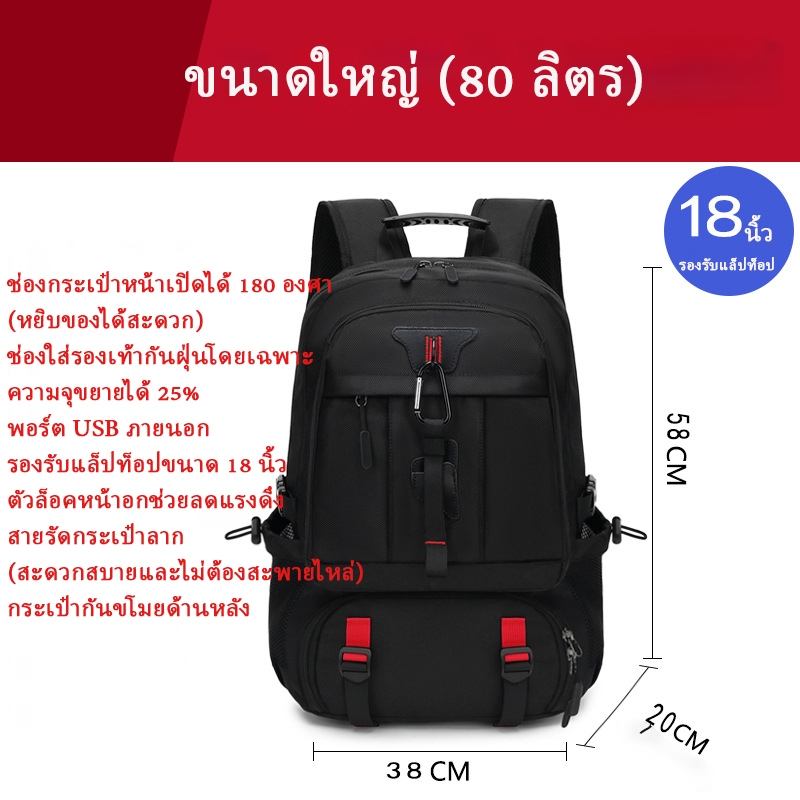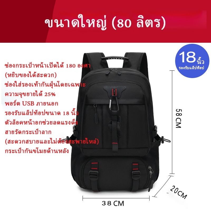 จัดส่งจากกรุงเทพ COD 50-80L กระเป๋าเป้เดินทางผู้ชายกระเป๋าเป้กันน้ำสำหรับเล่นกีฬาสามารถเก็บเสื้อผ้าและรองเท้าได้ backpac
