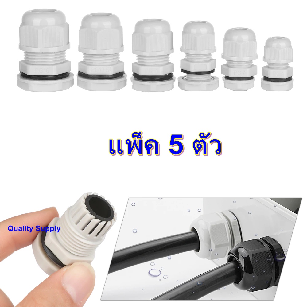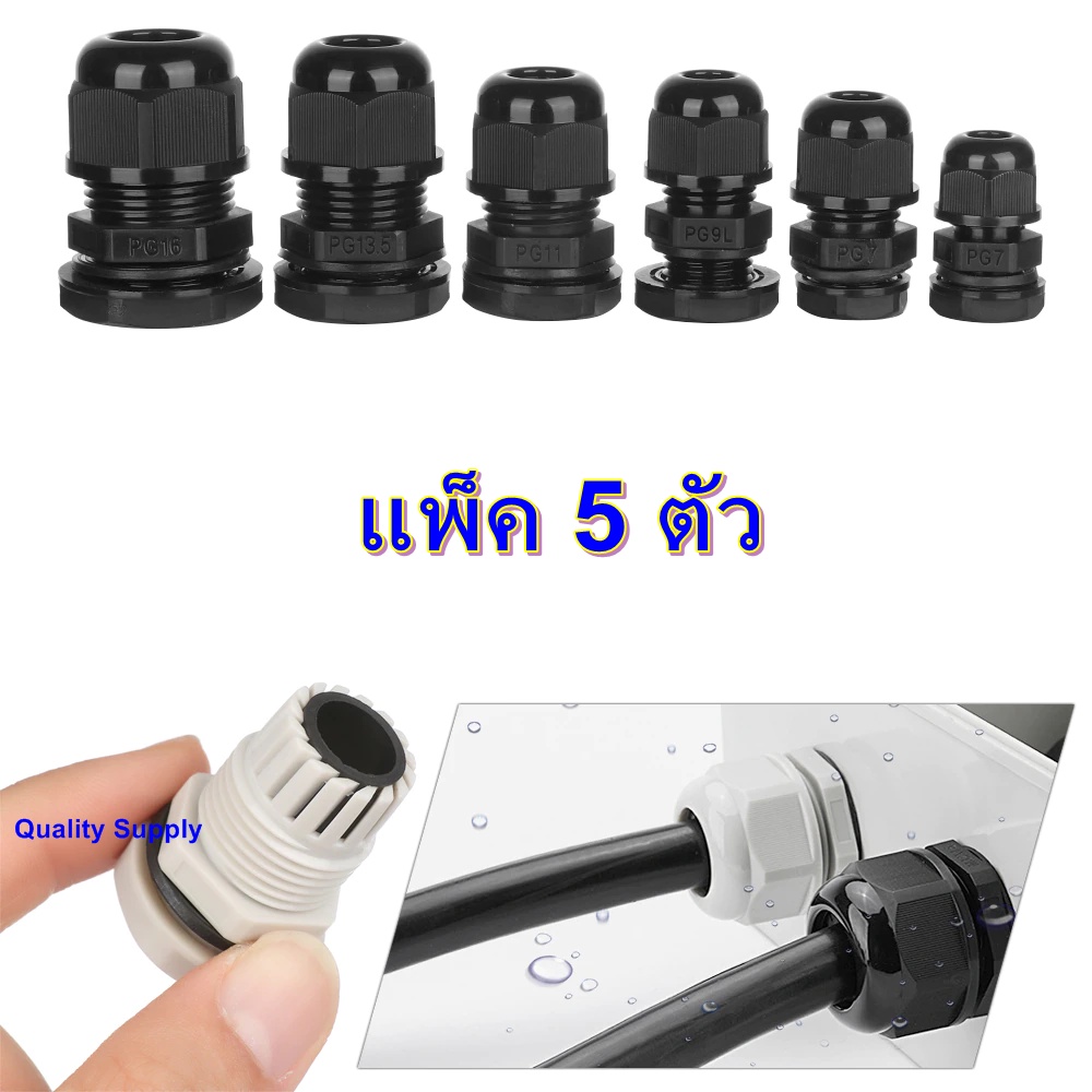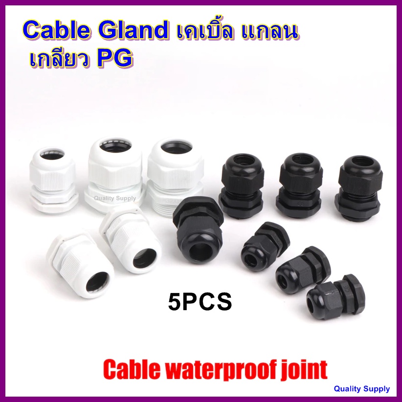 แพ็ค 5 ตัว Cable Gland เคเบิ้ล แกลน สีดำ สีขาว เกลียว PG (มูลค่าสินค้าน้อยกว่า 30บาท ขออนุญาตยกเลิก)