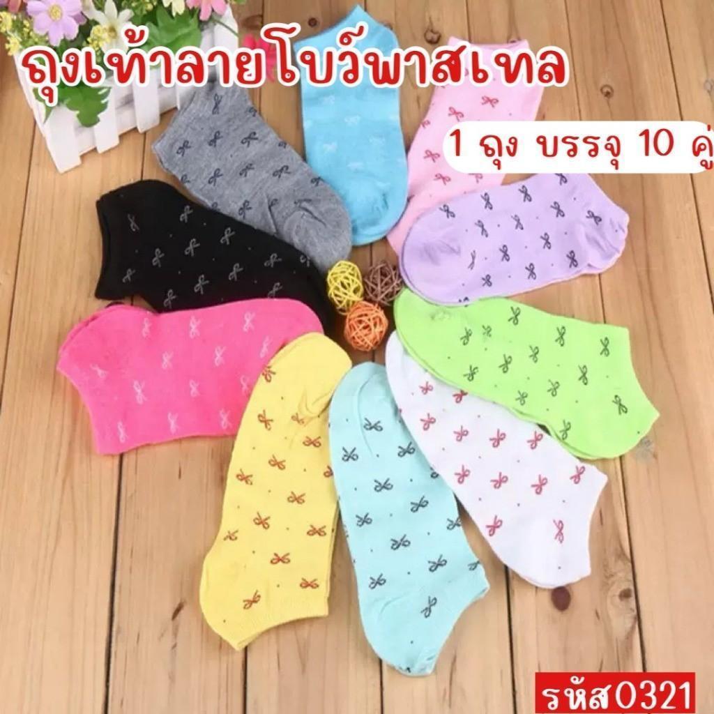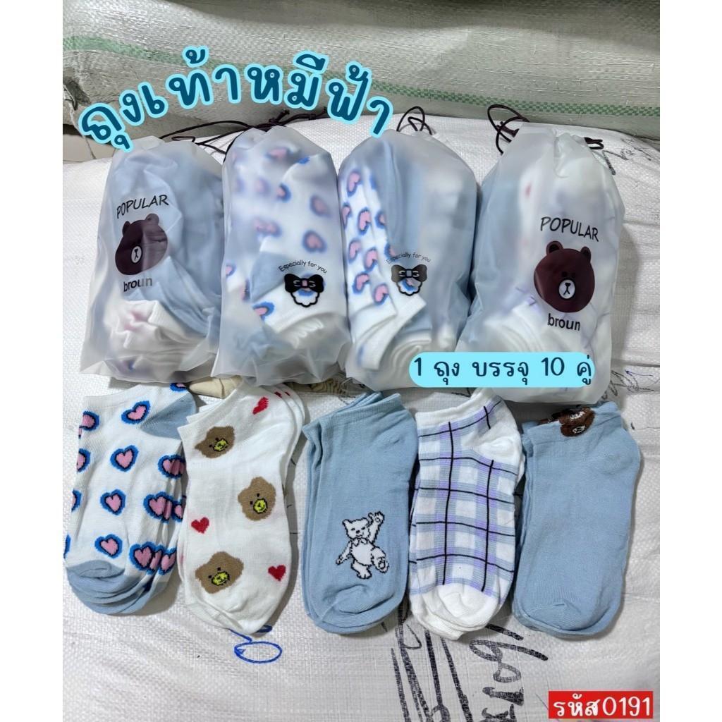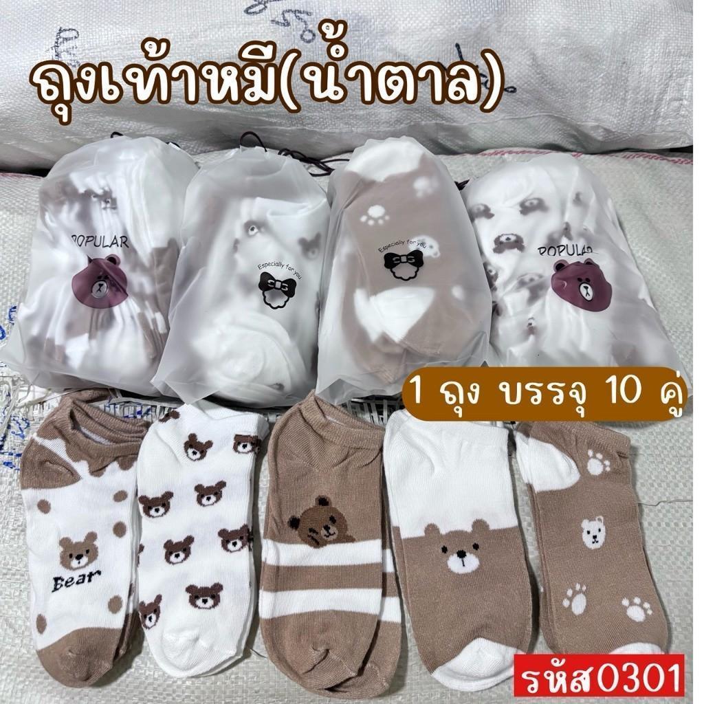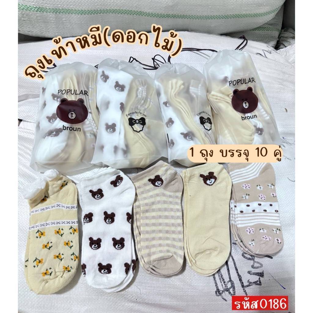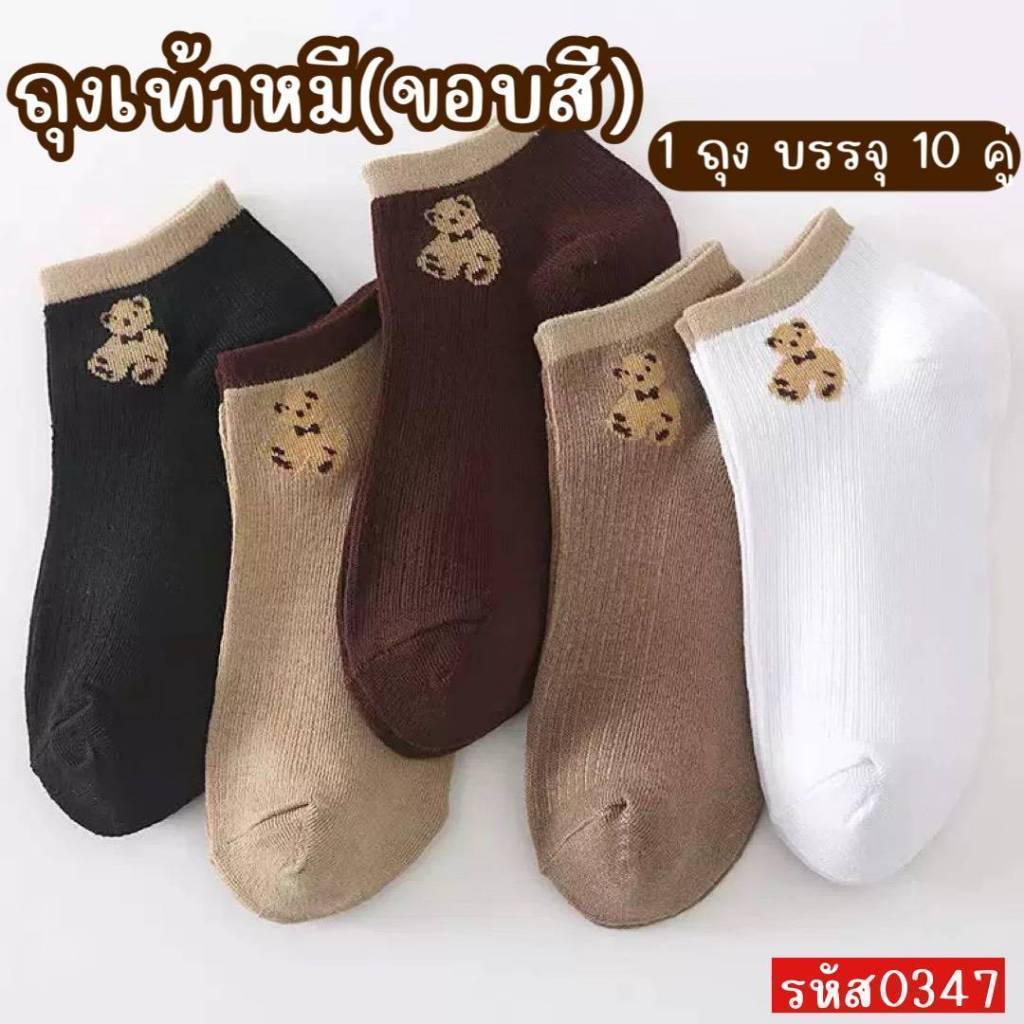 (แพ็คละ 10 คู่พร้อมถุงลายหมี) ถุงเท้า ลายหมี ข้อสั้น ผู้หญิง ผู้ชาย ลายน่ารัก มีให้เลือกหลายแบบ