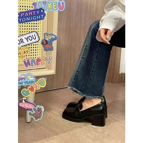 รองเท้าหนังส้นสูง🤎💙วินเทจหัวตารางรองเท้าไม่มีส้น 💙 แฟชั่นโลลิต้า แบบสวย ใส่สบายมาก