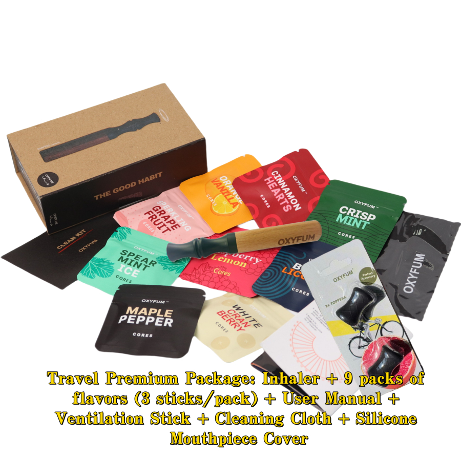 OXYFUM Travel Premium PACK Mouthpiece Diffuser Inhaler พร้อม Preferred Essential Oil Flavour Aromatherapy Aromater AIR อุปกรณ์