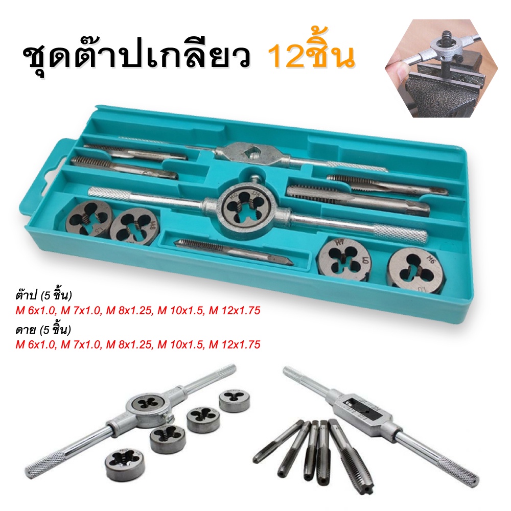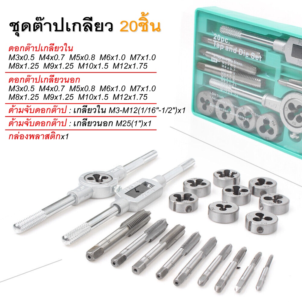 ชุดต๊าปเกลียวตัวผู้ ตัวเมีย M3-M12 ชุดด้ามต๊าป ชุดทำเกลียว ชุดต๊าปเกลียวมือ ขนาด 12/20 ชิ้น【พร้อมกล่อง】