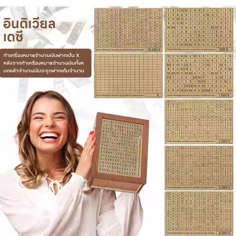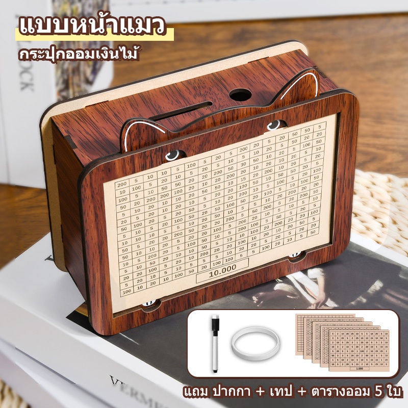 กระปุกออมสินไม้ ปี 2026 ไม่มีกลิ่น ใส่ธนบัตรและเหรียญได้ จุได้เยอะ นับได้ เช็ดได้ ใช้ซ้ำได้ กล่องออมทรัพย์