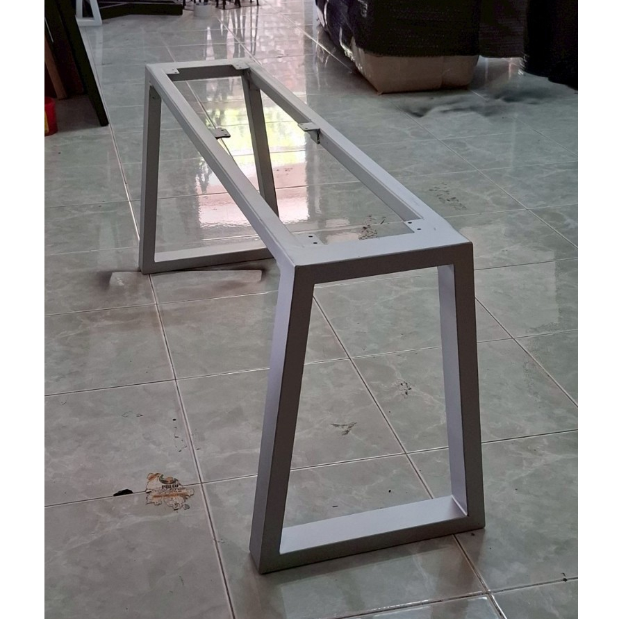 ขาโต๊ะเหล็ก ขาเหล็กสำเร็จรูป ทรงคางหมู ติดคานบนคู่ สีเงินด้าน โต๊ะขาเหล็ก (1ตัว) ขาเหล็กทำโต๊ะ กันสนิม แข็งแรง ทนทาน