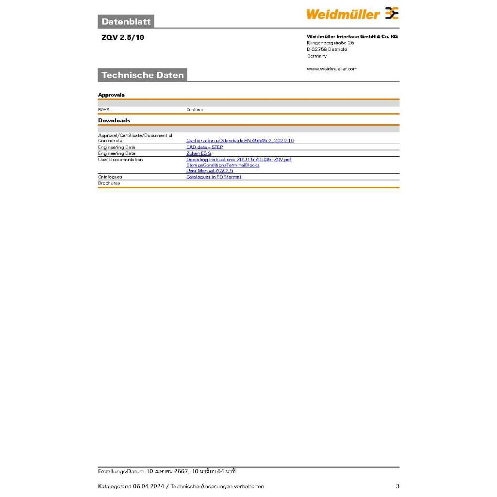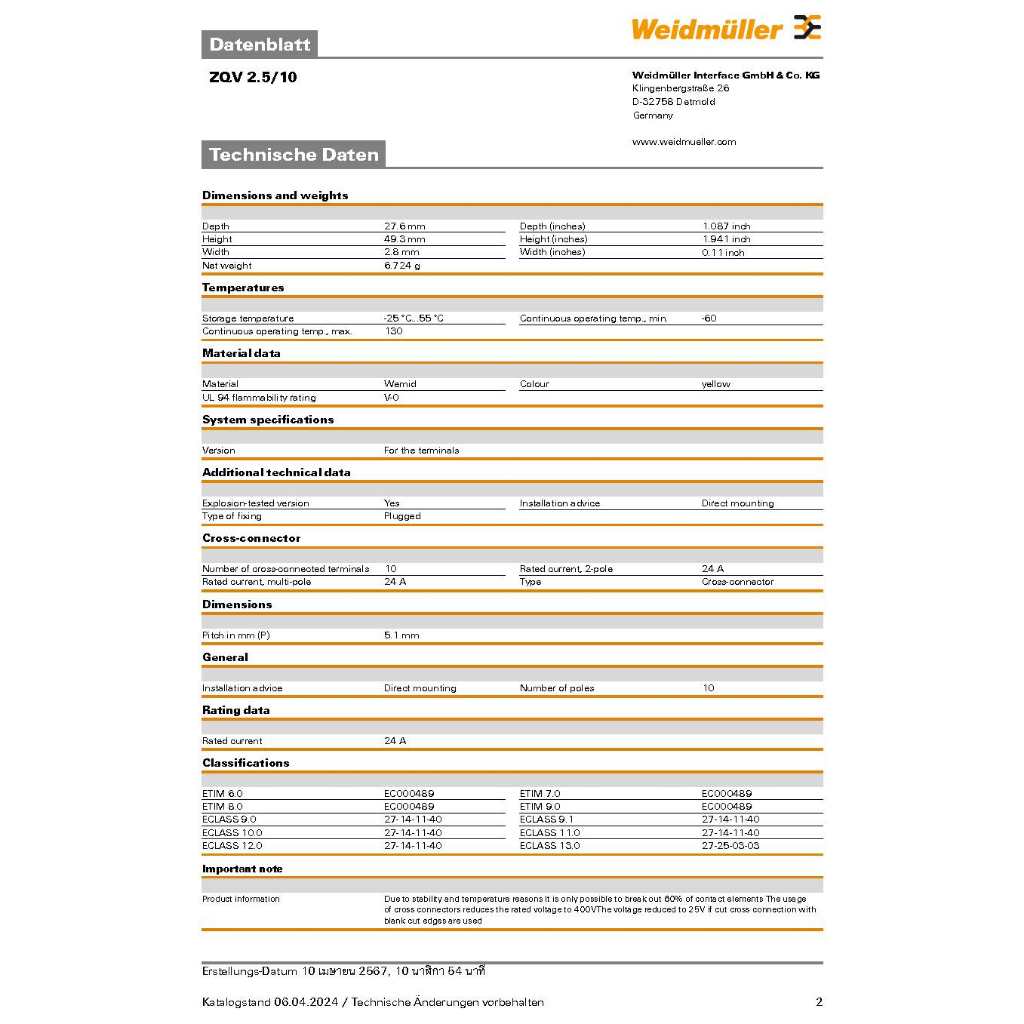 "WEIDMULLER" ZQV 2.5/10 JUMPER ขนาดสาย 2.5 10ขา CAT.No.1608940000 ***จำหน่ายต่อ1ชิ้น