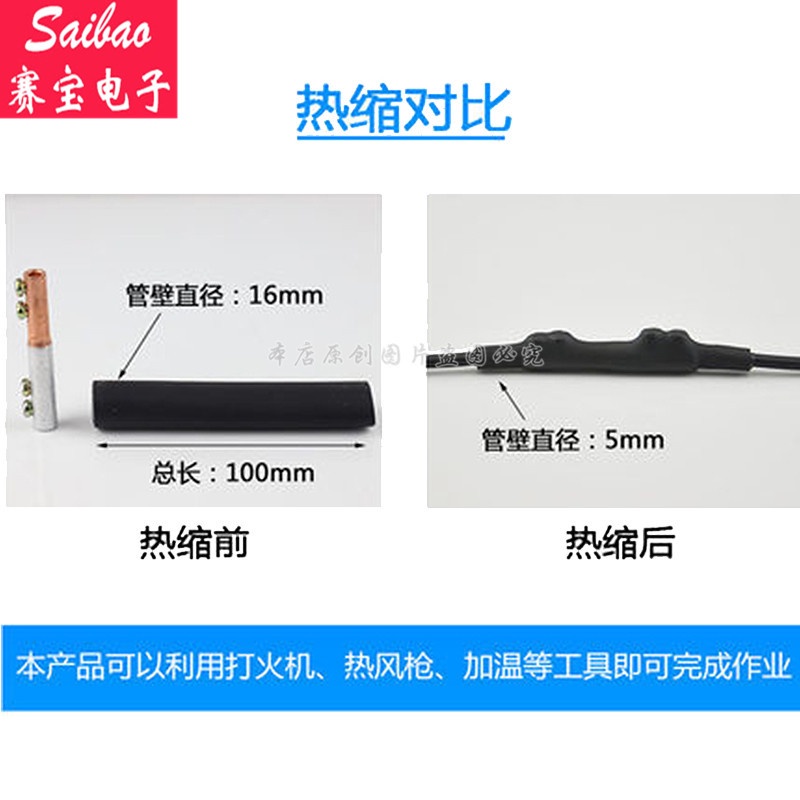 [5ม./แพ็ค] ท่อฉนวนท่อหดความร้อนคุณภาพสูงสีดําเส้นผ่านศูนย์กลาง 1/2/3/4/5/6/8/9/10/12/14/16/20/35มม