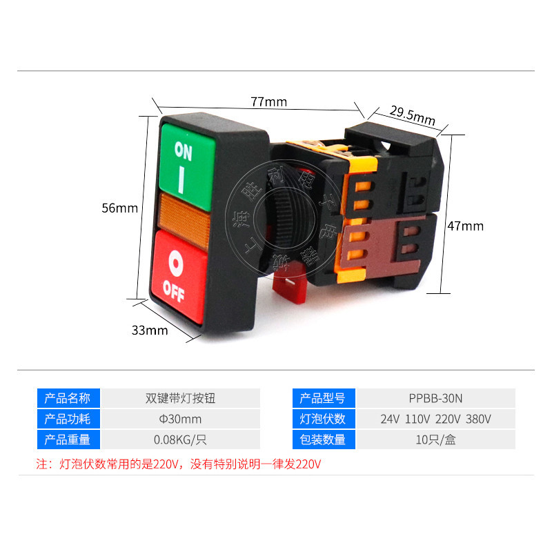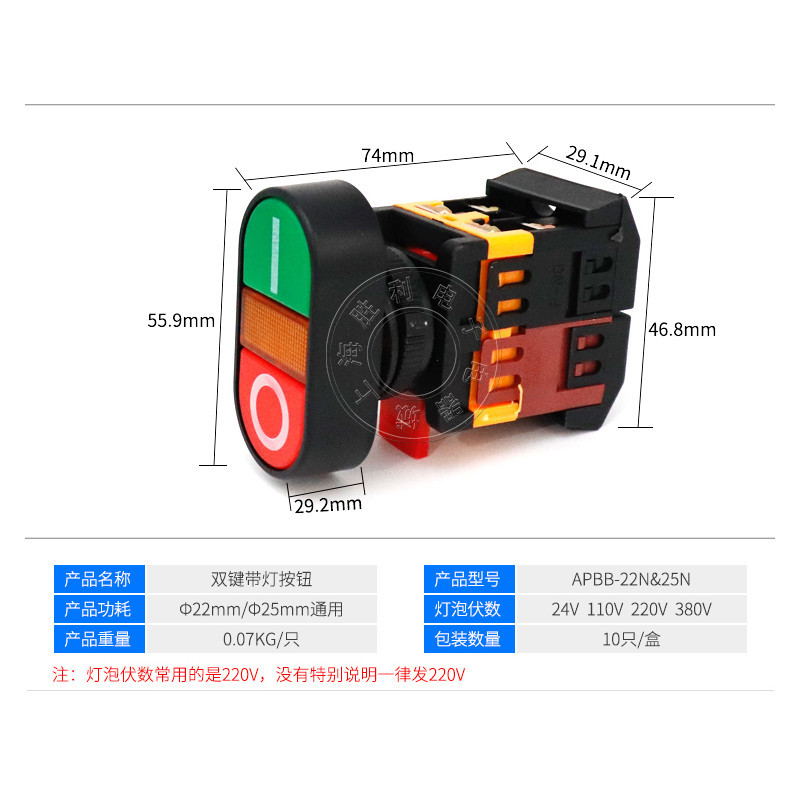 [แรงดันไฟฟ้าต่างๆ] ปุ่มกดสวิตช์สองหัว APBB-22N พร้อมไฟ PPBB ปุ่มคู่ บิตคู่ AS-22 คุณภาพสูง