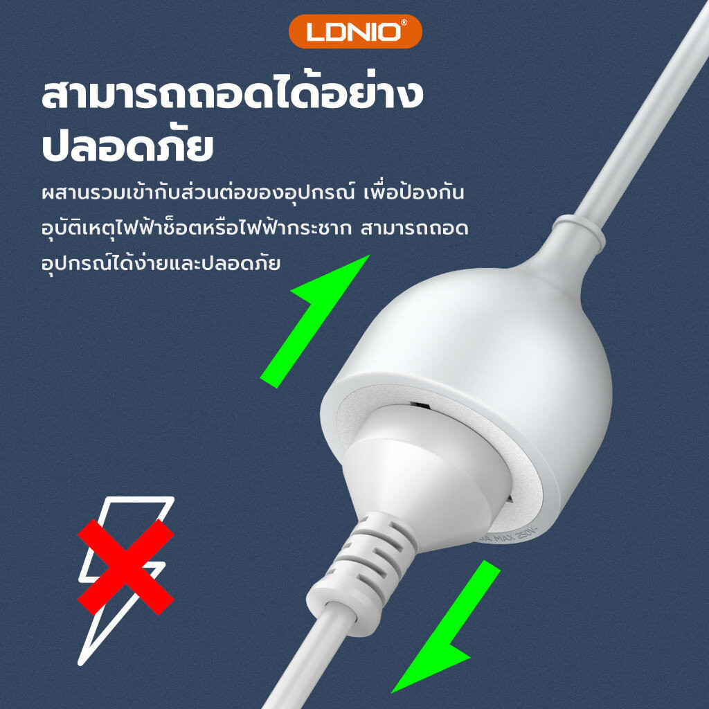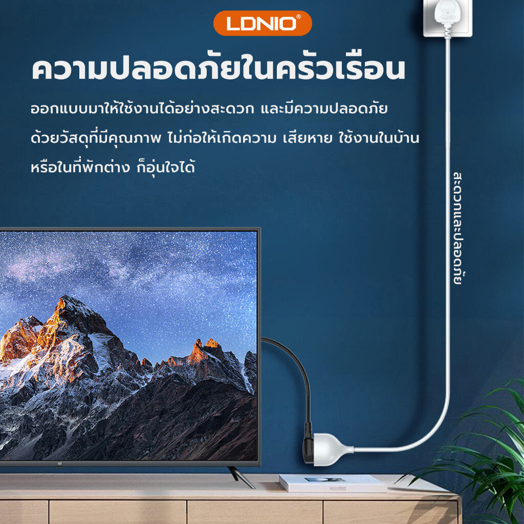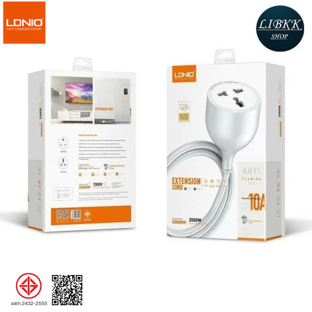 LDNIO SC1017 ปลั๊กต่อขยาย Socket Power Strip 10A 2500W สายไฟพ่วงอเนกประสงค์ EXTENSION CORD TURBO สายยาว 5 เมตร