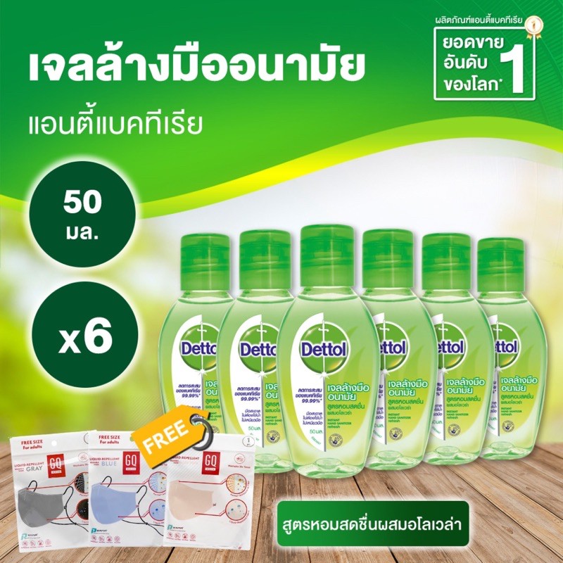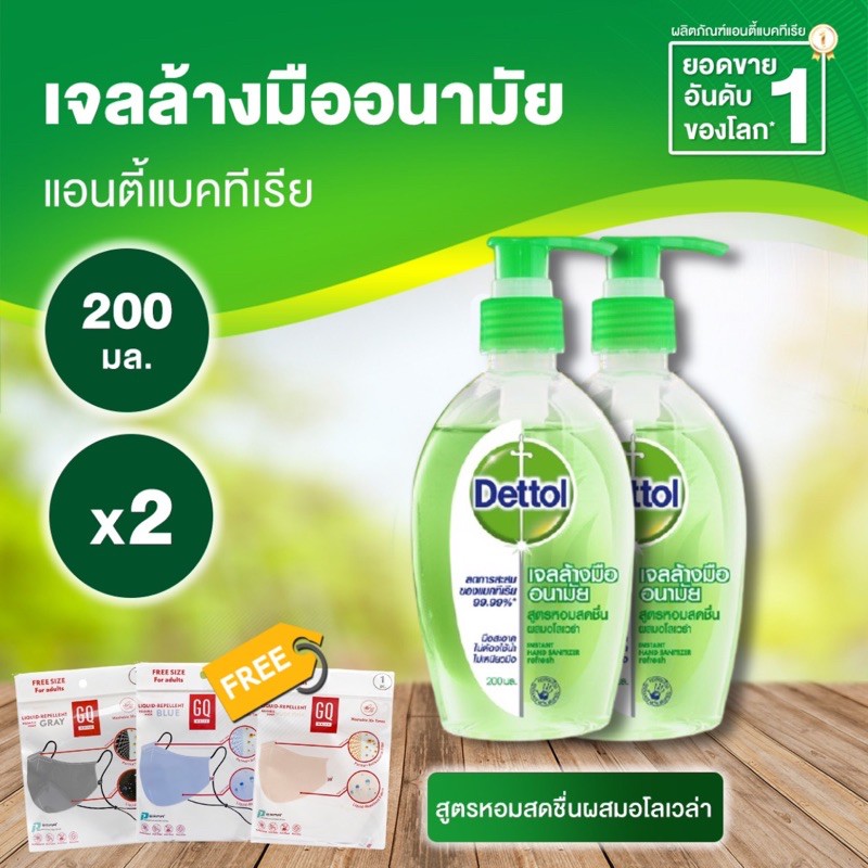 🟢[ฟรีGQ mask1ชิ้น]🟢DETTOL® เจลล้างมืออนามัย สูตรหอมสดชื่นผสมอโลเวล่า 200ML.x2 / 50ML.x6