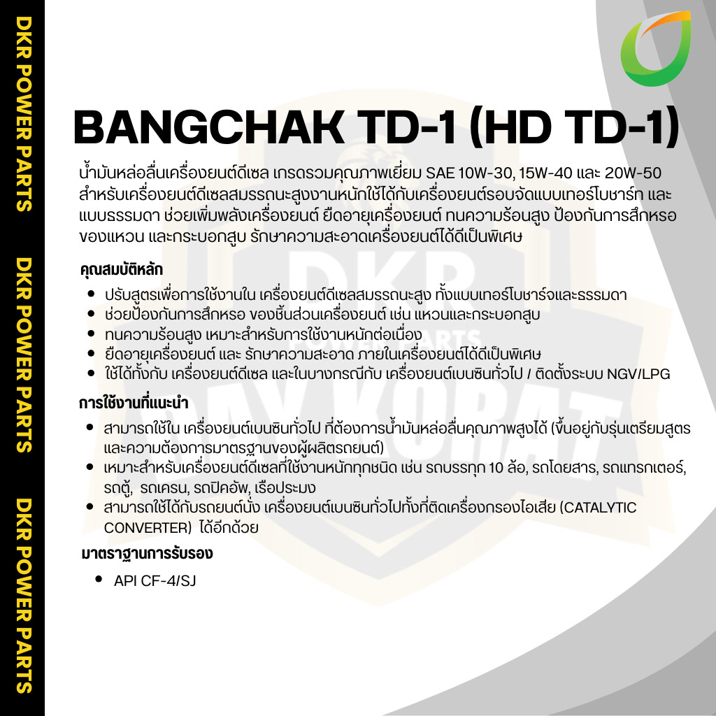 บางจาก ทีดีวัน BANGCHAK TD-1 (HD TD-1)15W-40,20W-50 น้ำมันเครื่องดีเซล API CF-4/SJ สำหรับรถบรรทุก รถไถ เครื่องยนต์ดีเซล