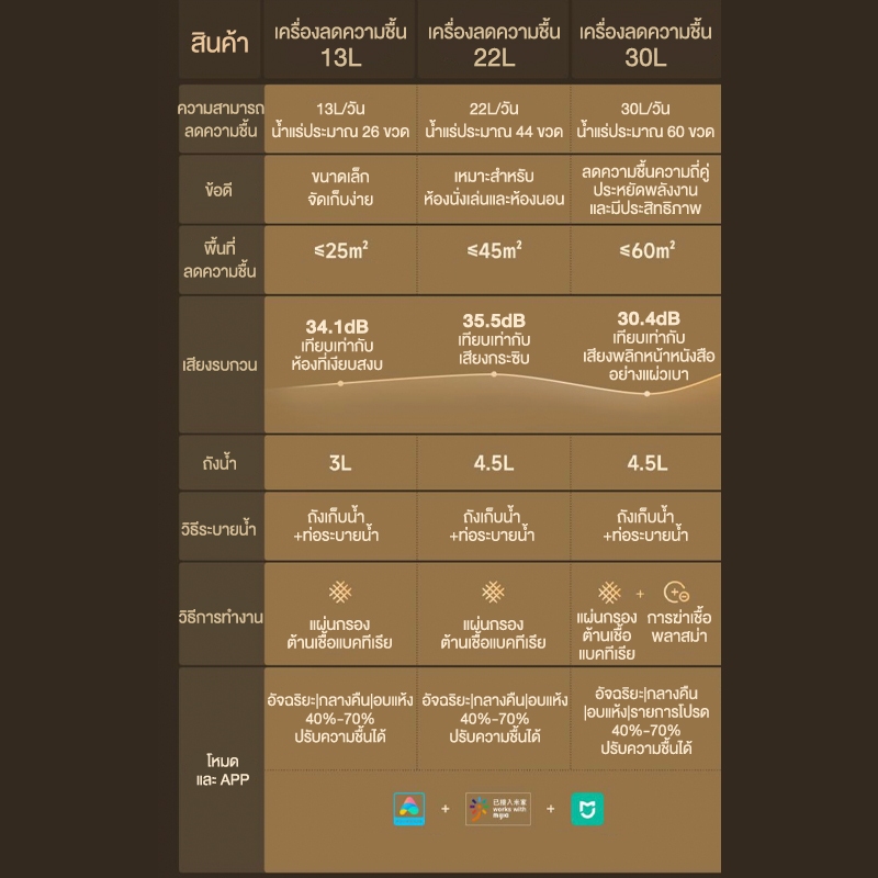 Xiaomi Smart Dehumidifier เครื่องลดความชื้นอัจฉริยะ 13L/ 22L/30L เสียงเงียบ เชื่อมต่อแอพได้ เครื่องใช้ไฟฟ้าในบ้าน