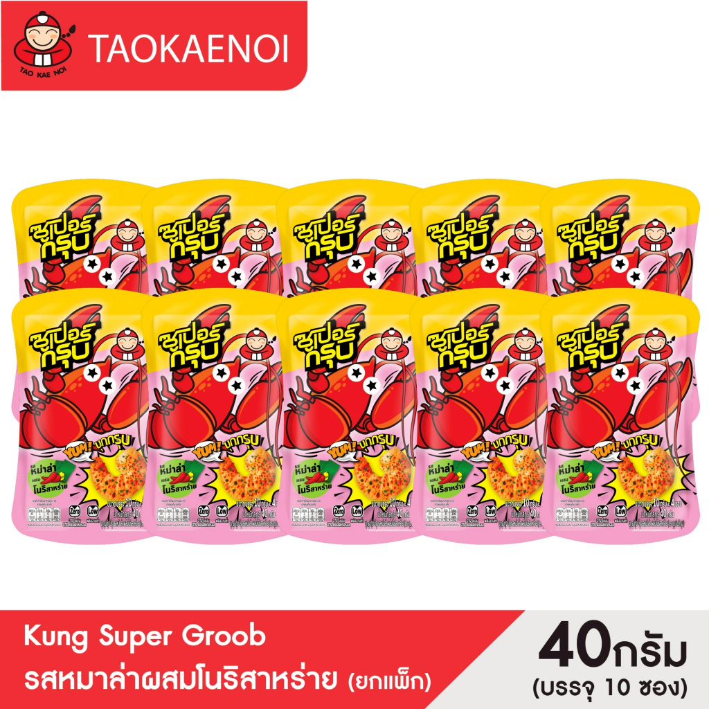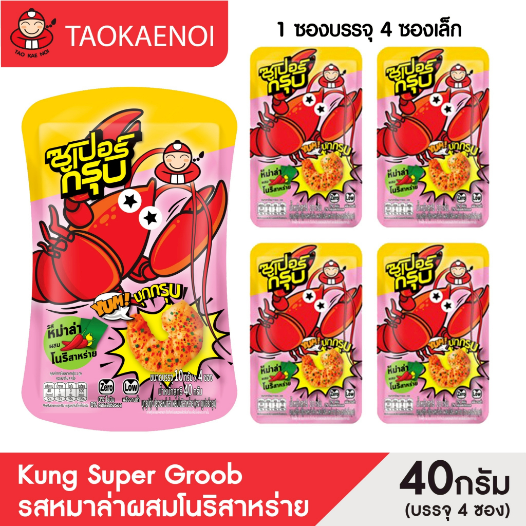 Super Groob ซูเปอร์กรุบบุกรูปกุ้งรสหมาล่าผสมโนริสาหร่าย 40g (10 ซ อง/แพ็ค)