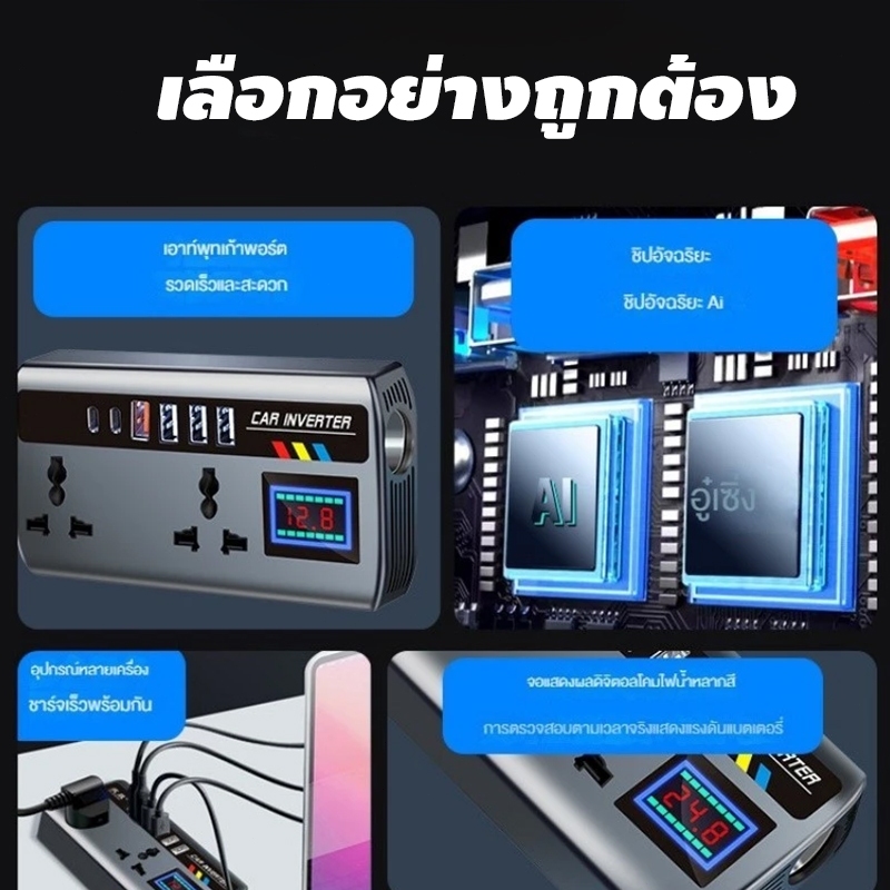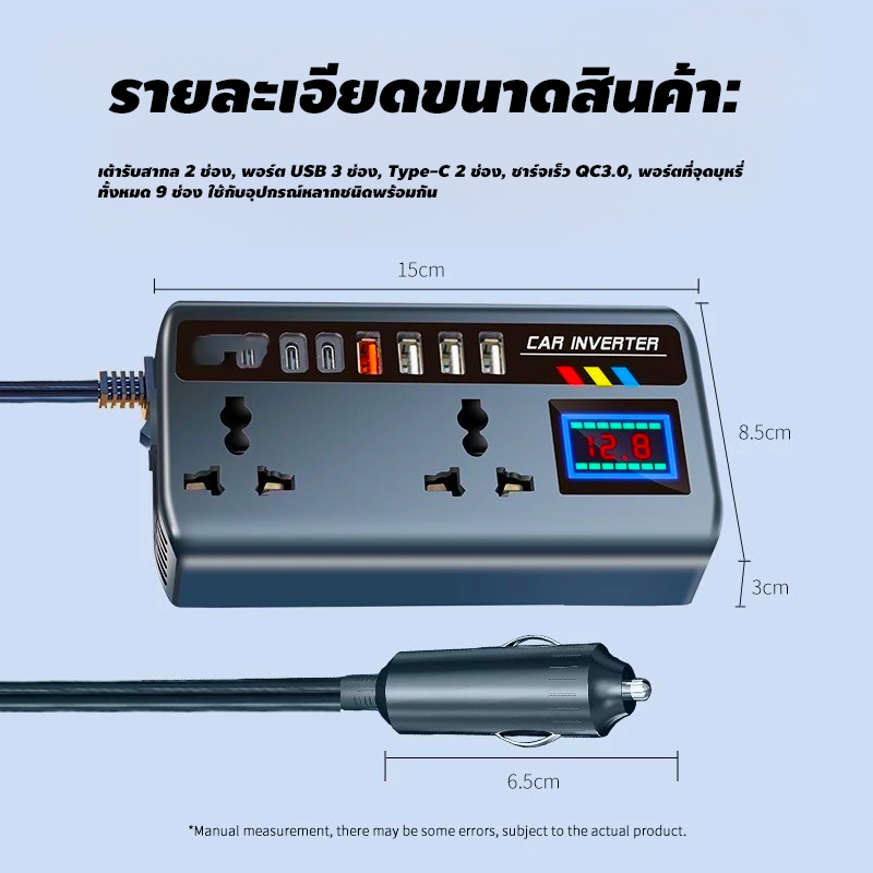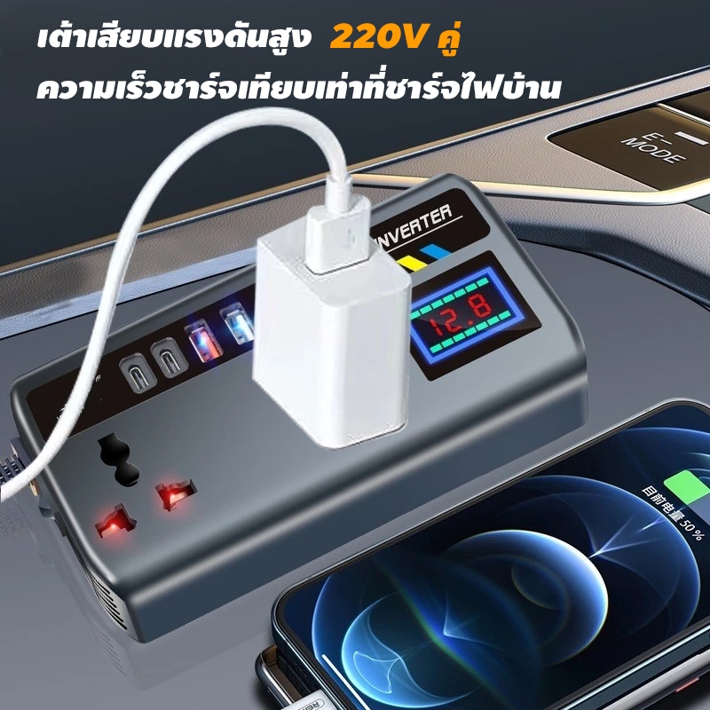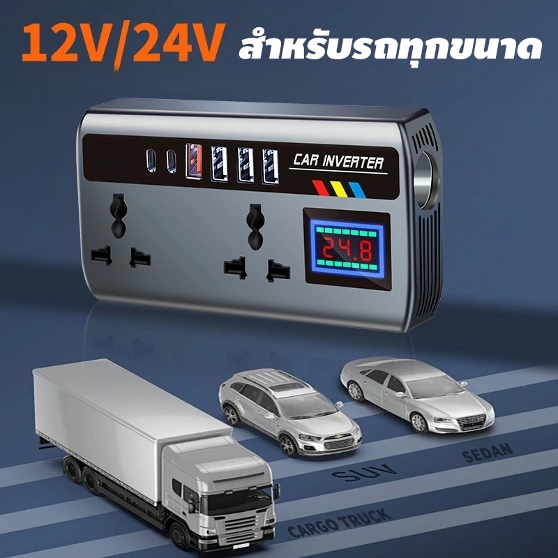 【ส่งเร็ว】อินเวอร์เตอร์รถแปลงปลั๊ก 12 V/24 V ถึง 220V Fast พอร์ตชาร์จแบบพกพาเครื่องชาร์จรถยนต์ Car Charger