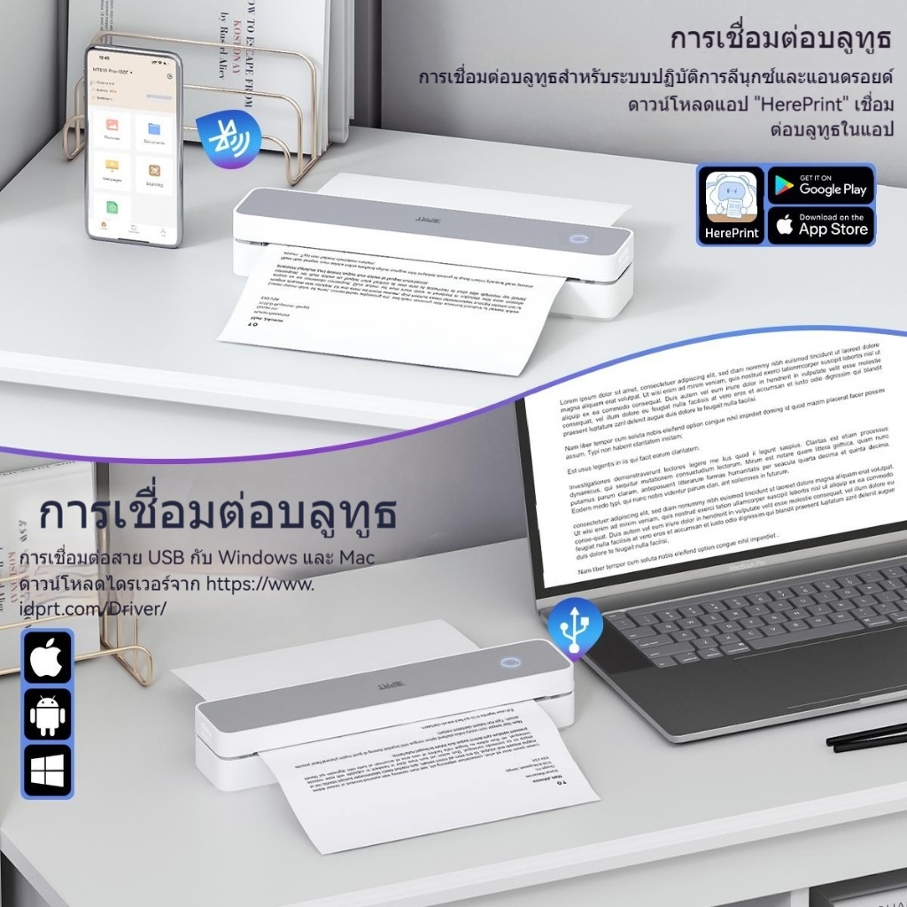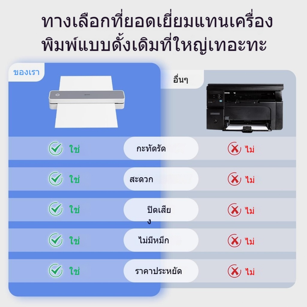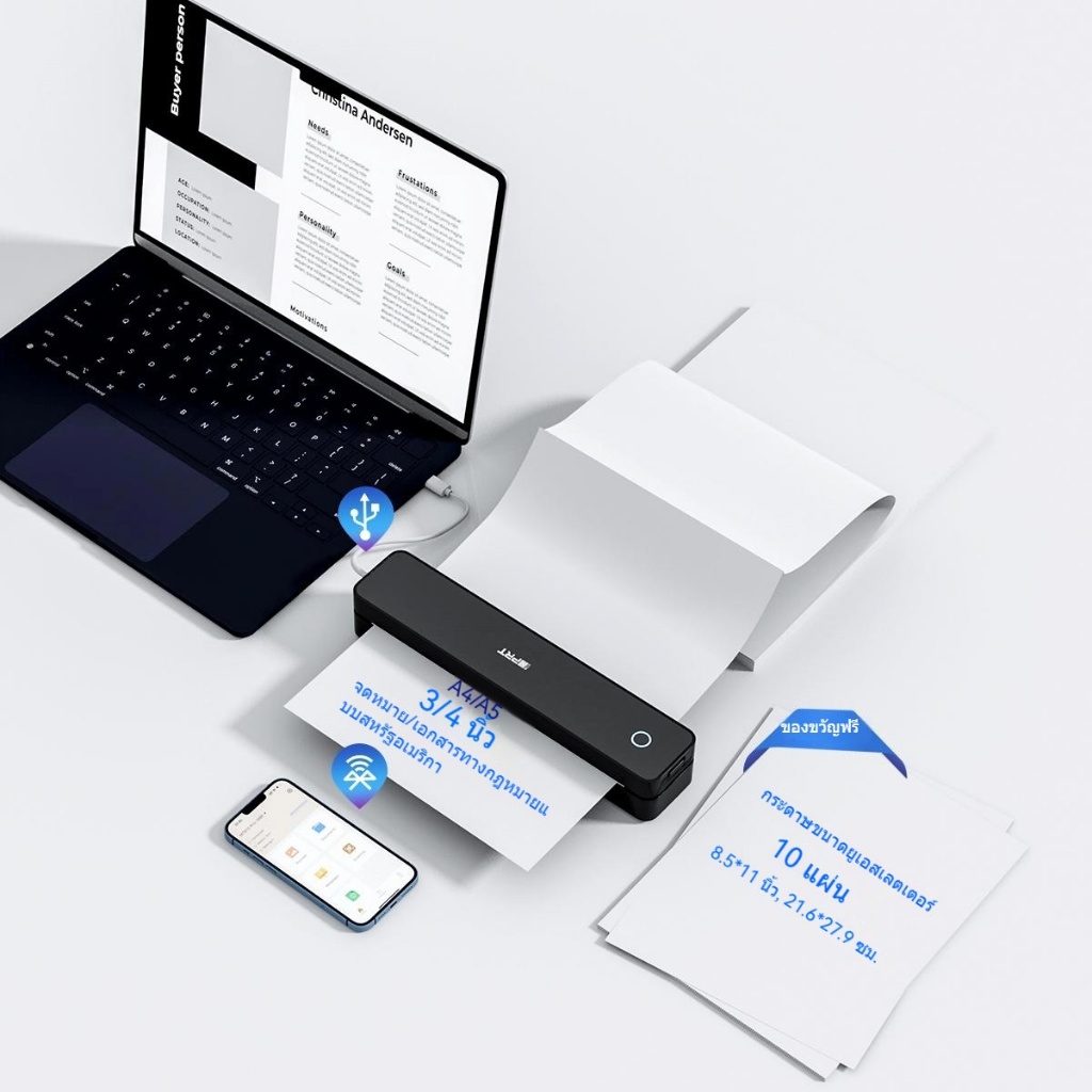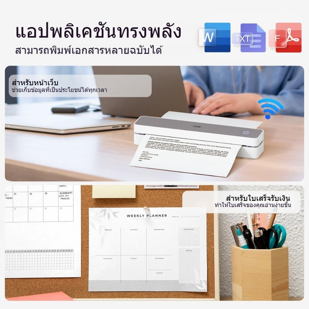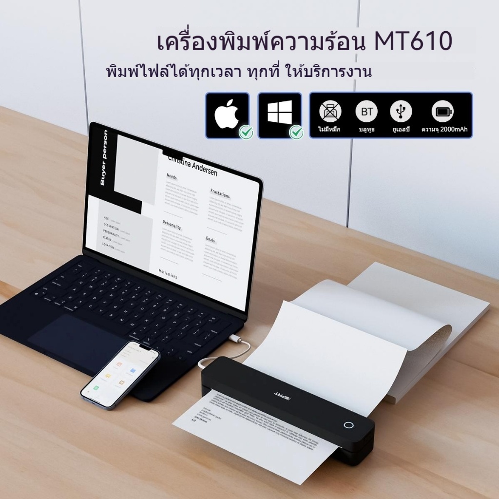 MT610 เครื่องพิมพ์พกพา A4 ไร้หมึก | Bluetooth Wireless | ขาวดำ | ใช้กับมือถือ สำหรับบ้านและออฟฟิศ