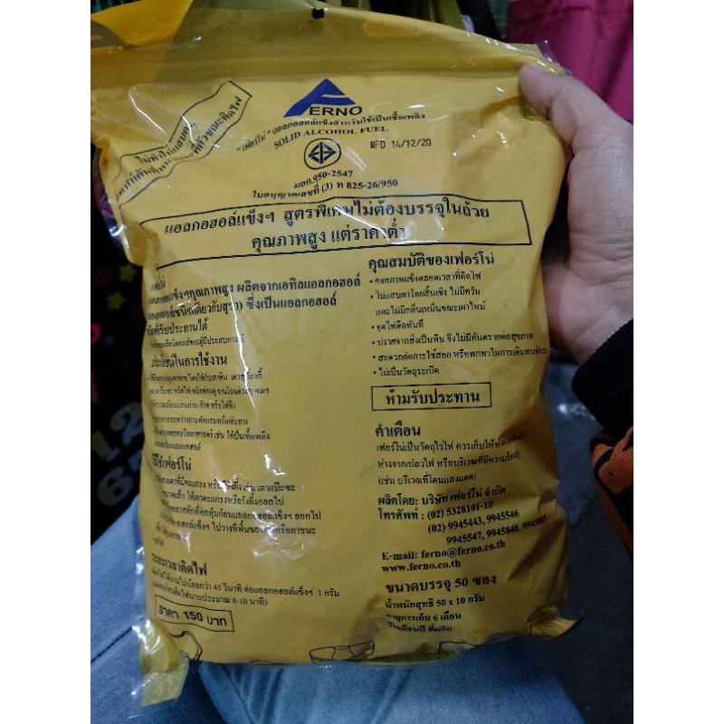 แอลกอฮอล์ก้อน เชื้อเพลิงจุดไฟ 1 ถุง มี 50 ก้อน แก๊สก้อนใส่หม้อไฟ ชนิดไม่มีถ้วย