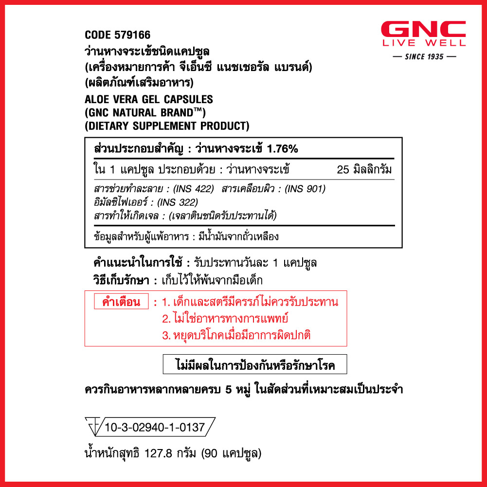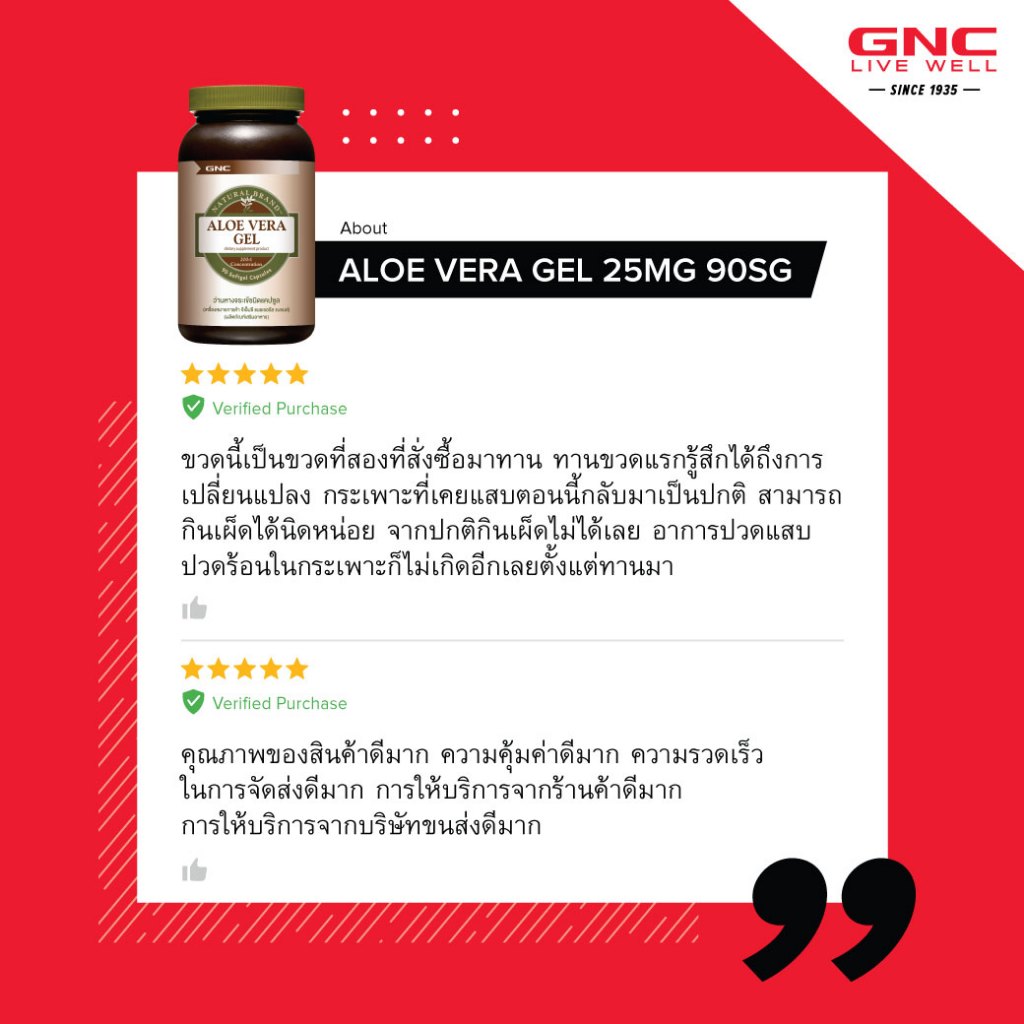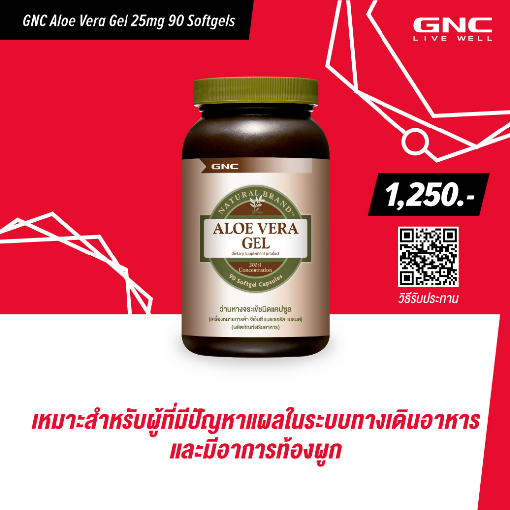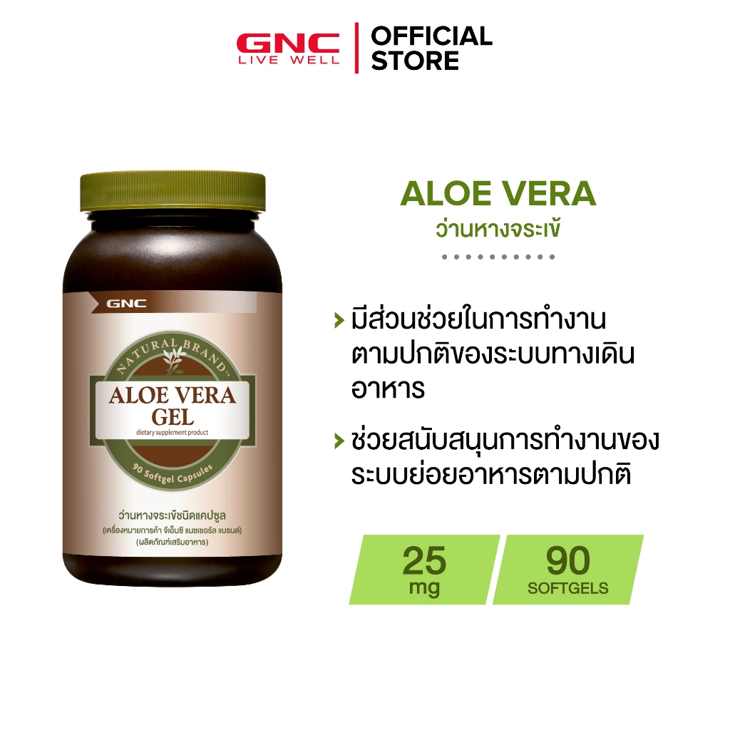 GNC Aloe Vera Gel 25mg 90 Softgels "ว่านหางจระเข้ X เพื่อระบบทางเดินอาหารและขับถ่ายที่ดี"