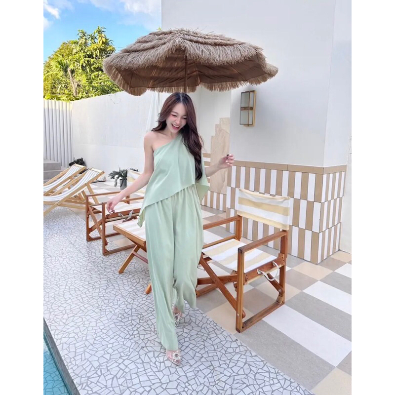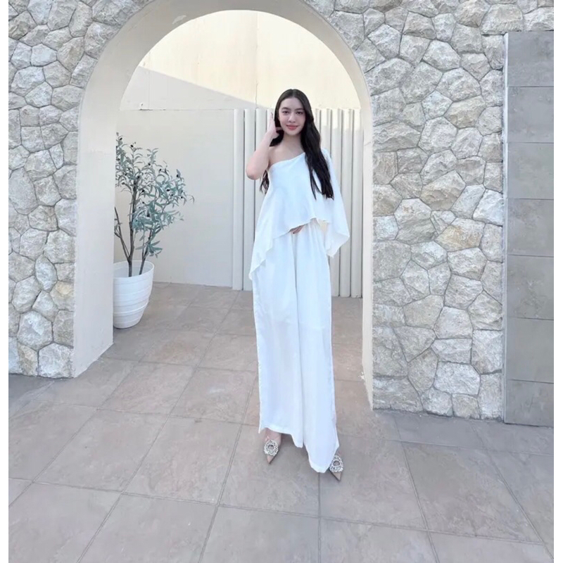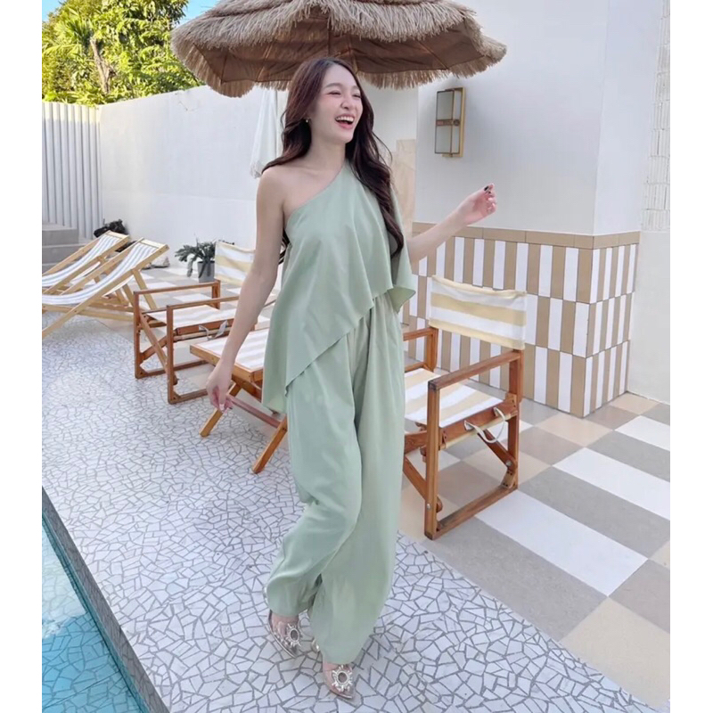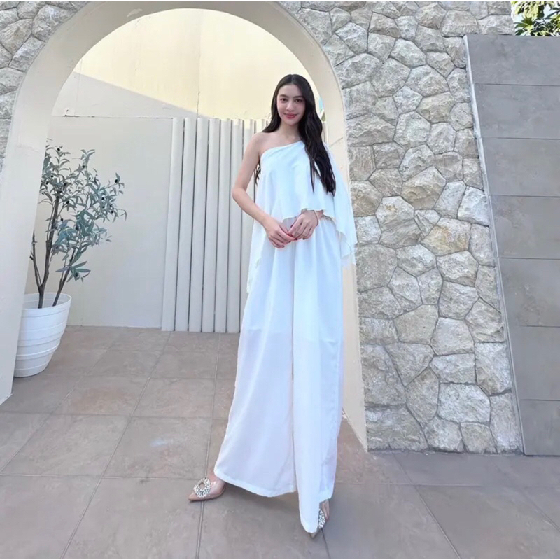 Basicsbysita | L811 - ชุดจั๊มปาดไหล่ขายาว ปาดข้าง สม็อคเอว สวยสับ