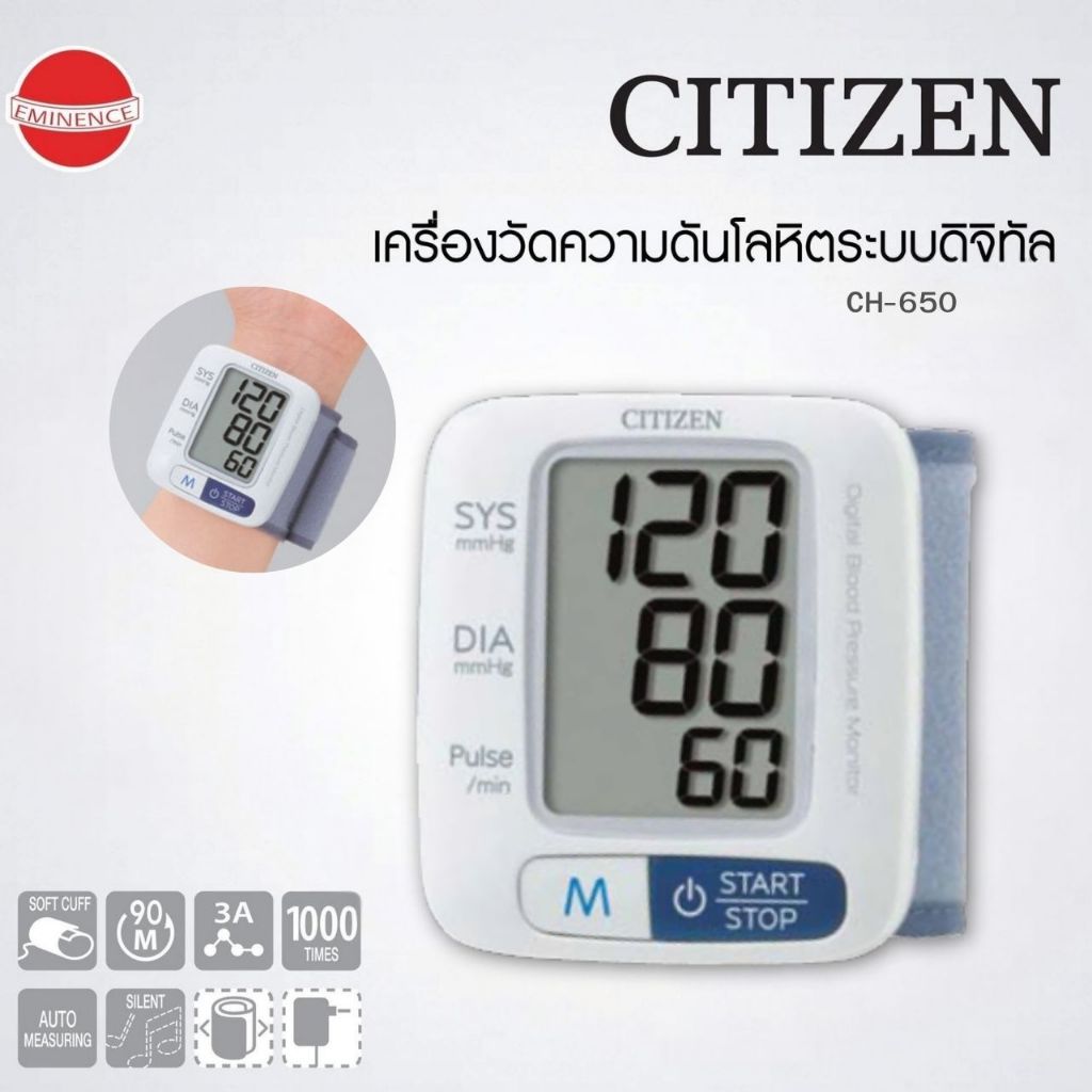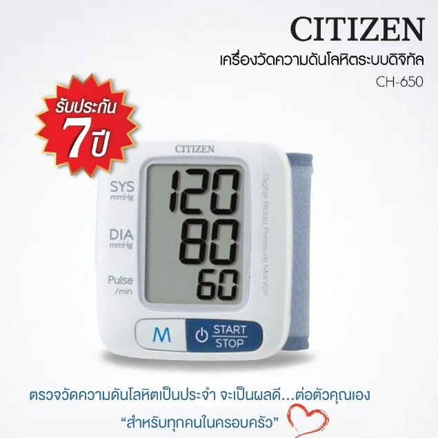 เครื่องวัดความดันโลหิต(ข้อมือ) CITIZEN รุ่น CH-650 มาตราฐานญี่ปุ่น พกพาง่าย (รับประกันสินค้า 7 ปี)