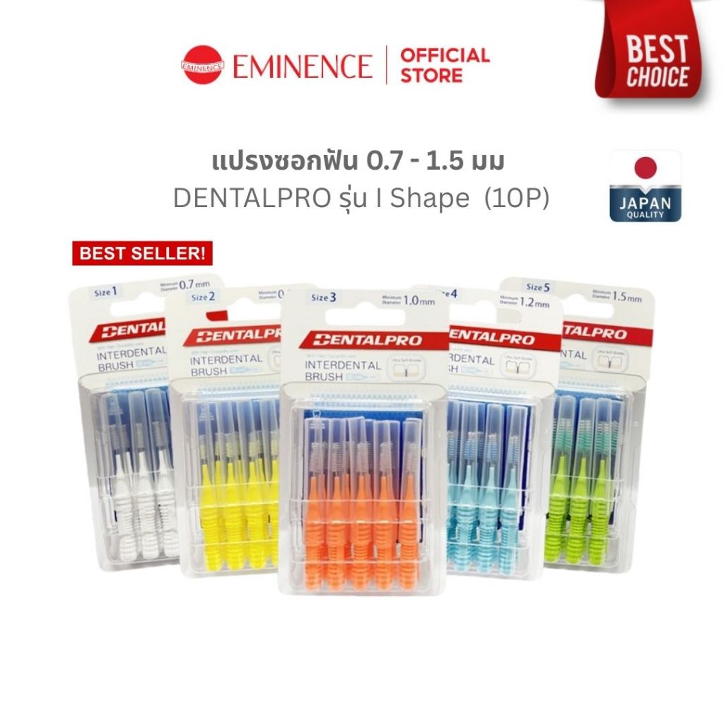DENTALPRO I Shape แปรงซอกฟัน 0.7-1.5 มม 10P จากญี่ปุ่น เพื่อคนจัดฟัน ทำความสะอาดซอกฟัน