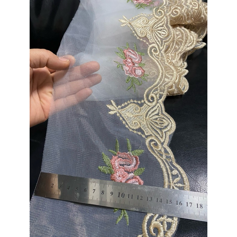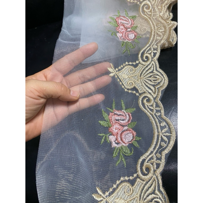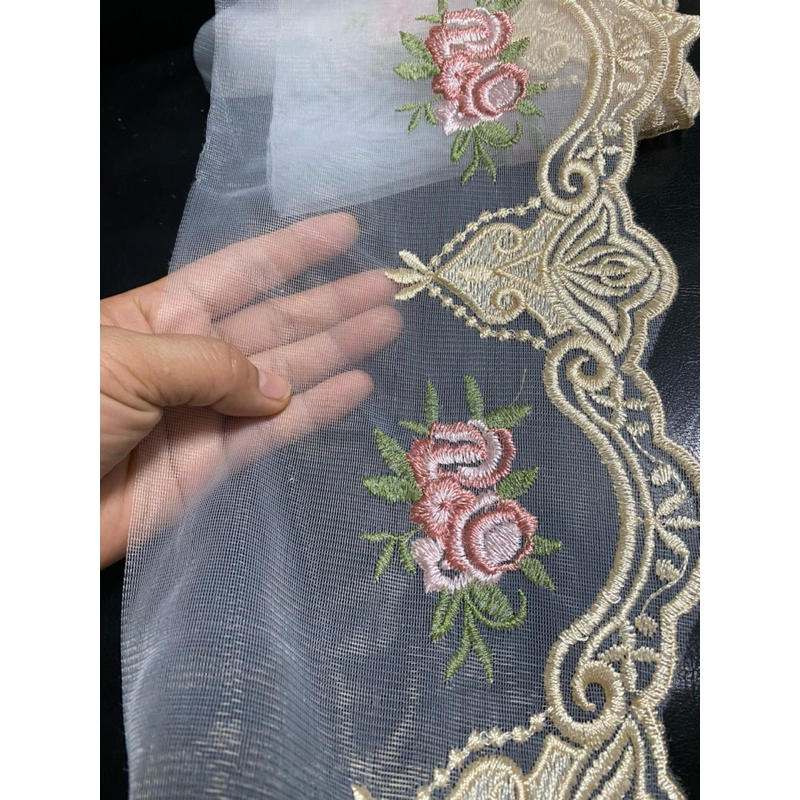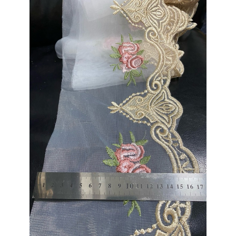 มียกพับ15หลา ลูกไม้ระบาย ระบายไหมแก้ว ลูกไม้ระบายปัก