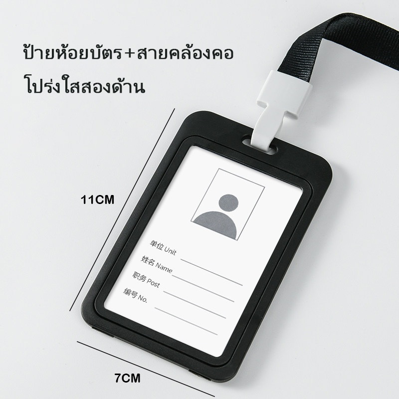 ป้ายห้อยบัตรและสายคล้องคอ PP โปร่งใสสองด้าน แข็งแรง ทนทาน สำหรับบัตรนักเรียน บัตรพนักงาน หลายสีให้เลือก