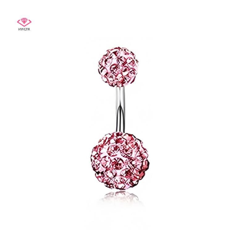 HWETR Simple สีชมพู Navel แหวนผู้หญิงแฟชั่น Belly ปุ่มแหวนเซ็กซี่ Belly เจาะเครื่องประดับสแตนเลส Belly ปุ่มแหวนใหม่