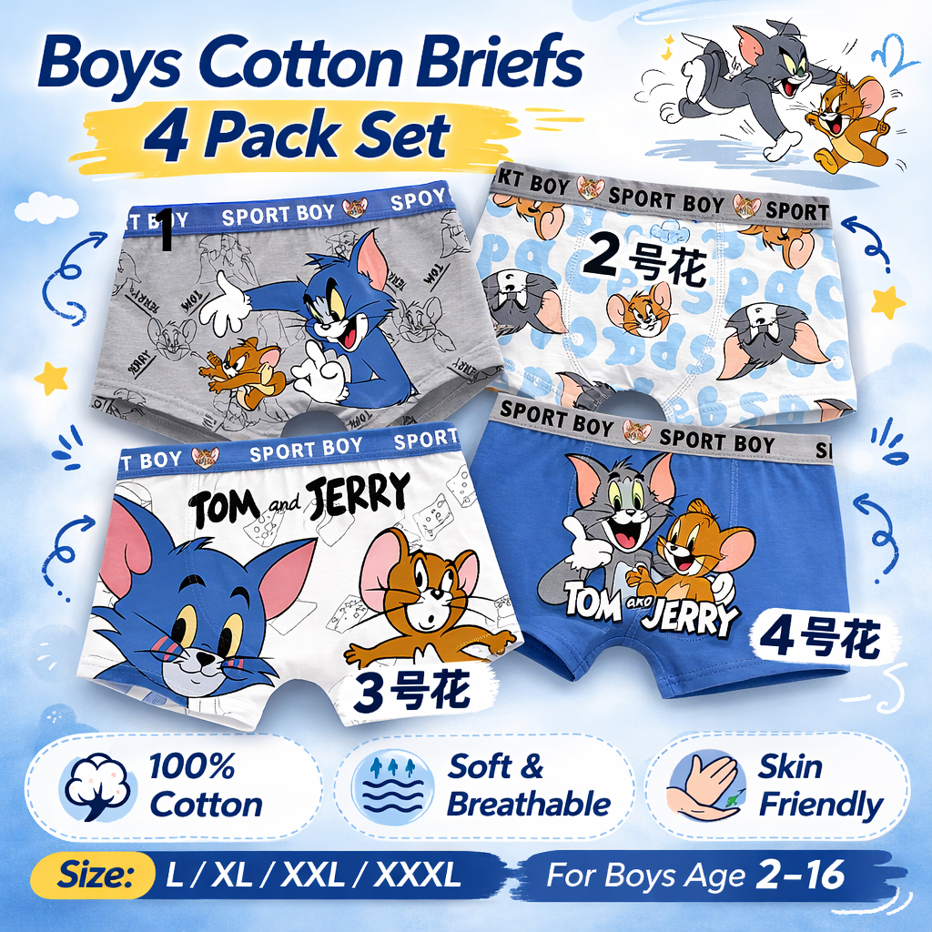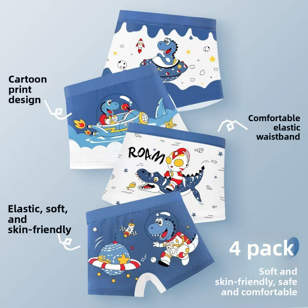 ชุดกางเกงในเด็กชาย 4 ตัว ดีไซน์น่ารัก ทนทาน และระบายอากาศได้ดี