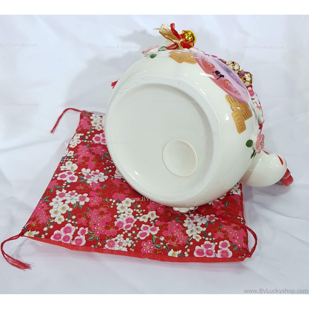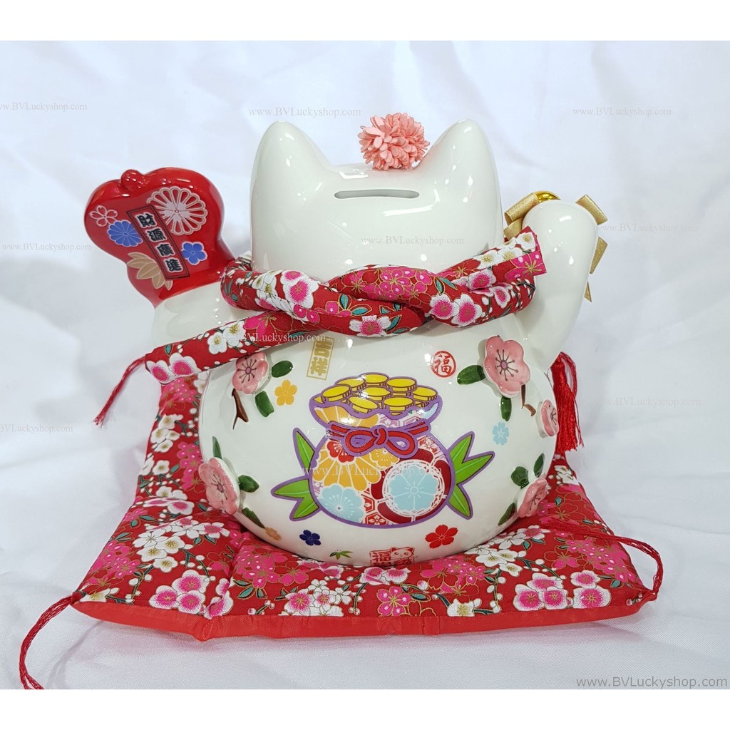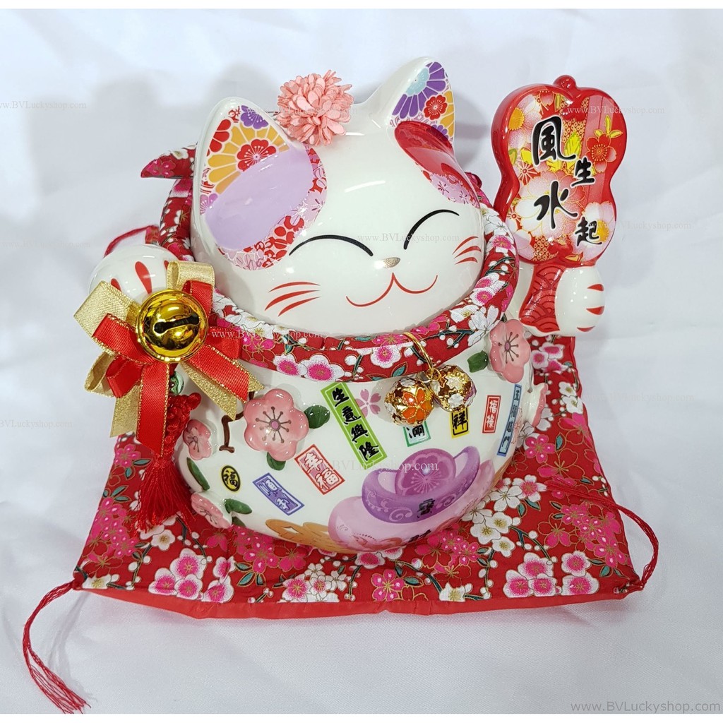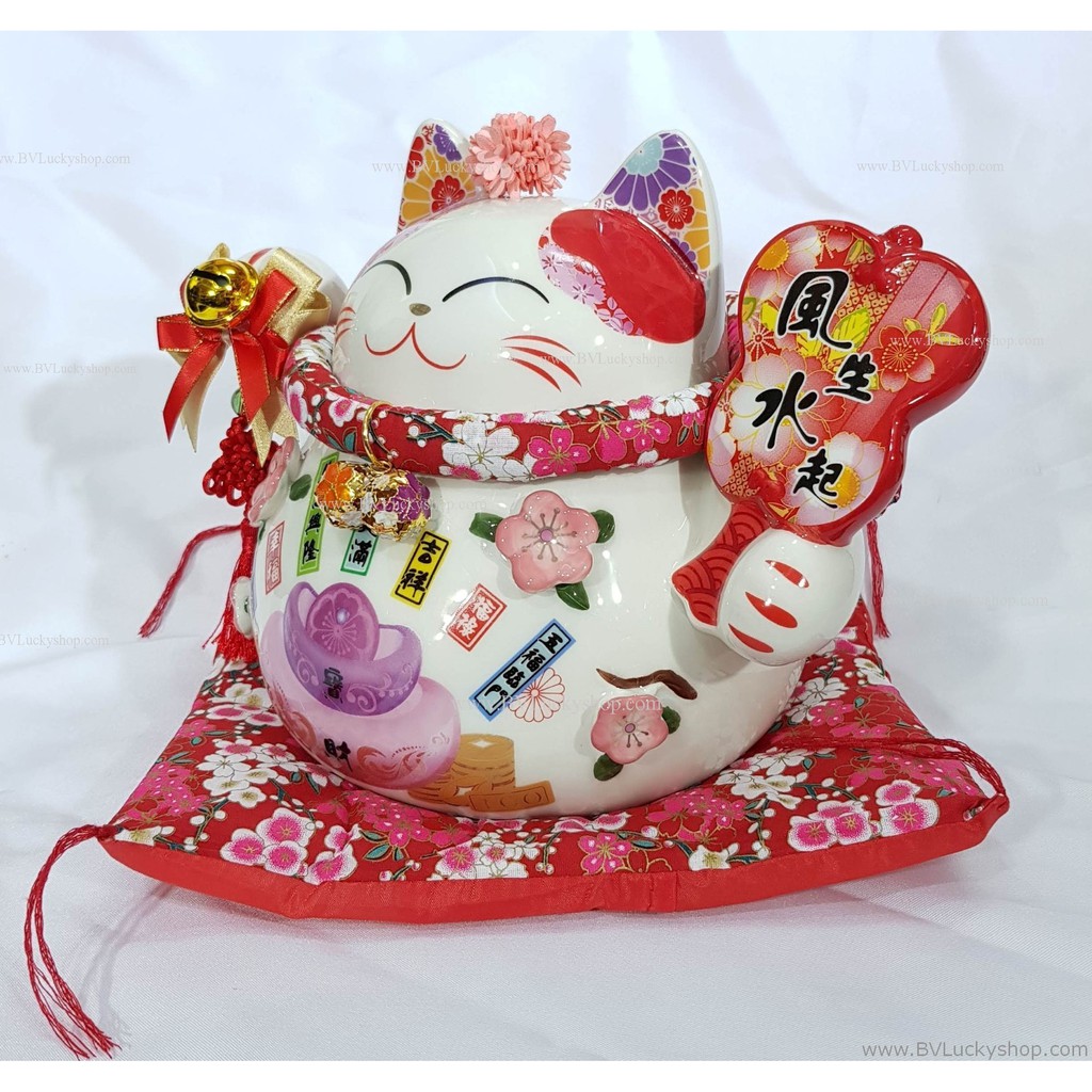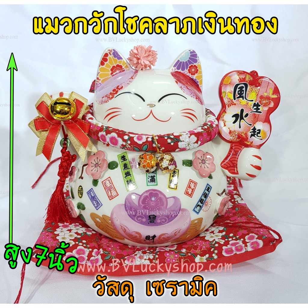 แมวกว ัก แมวนำโชค สูง 7 นิ้ว ถือพัด กวักเงินกวักทอง - เซรามิค [86885]
