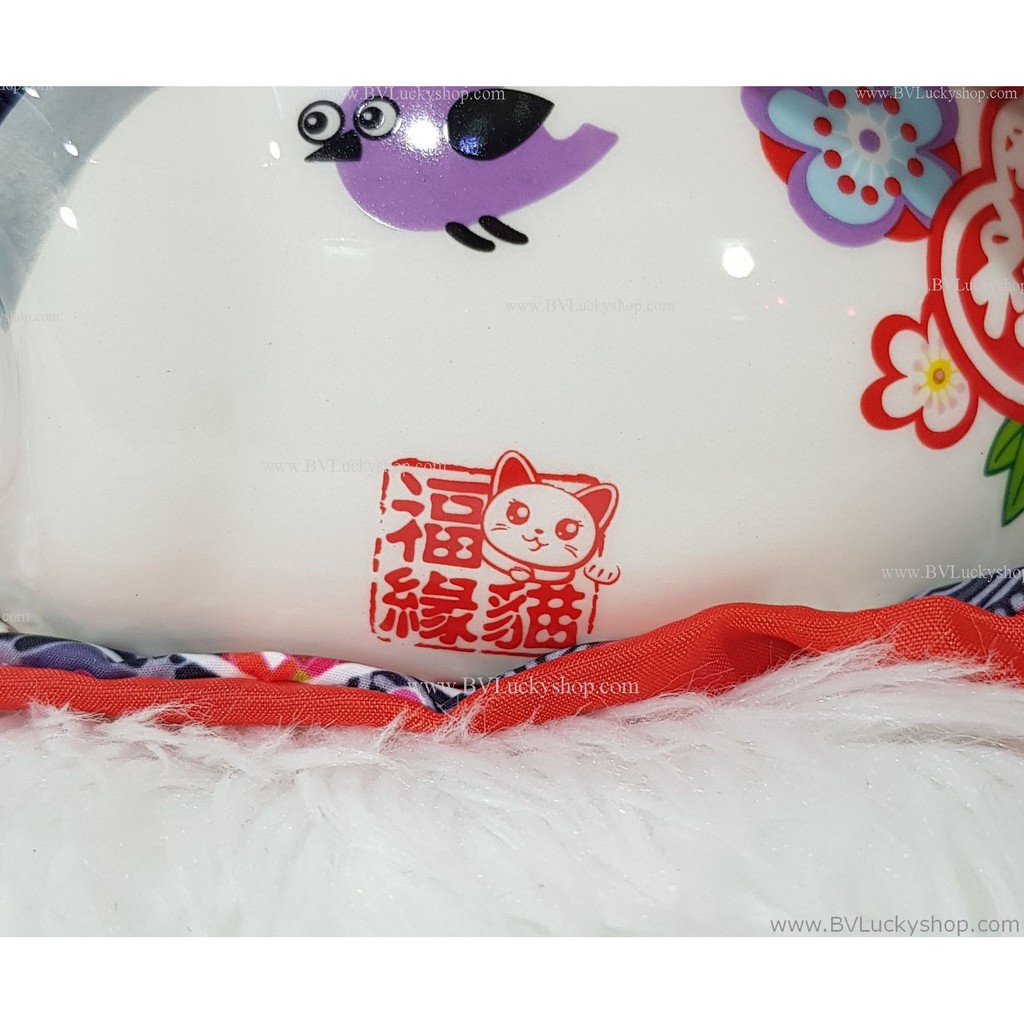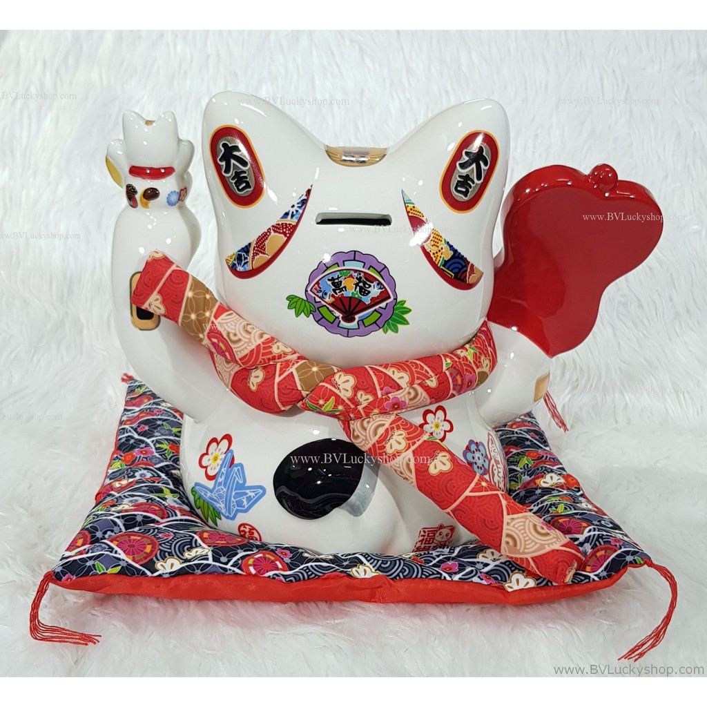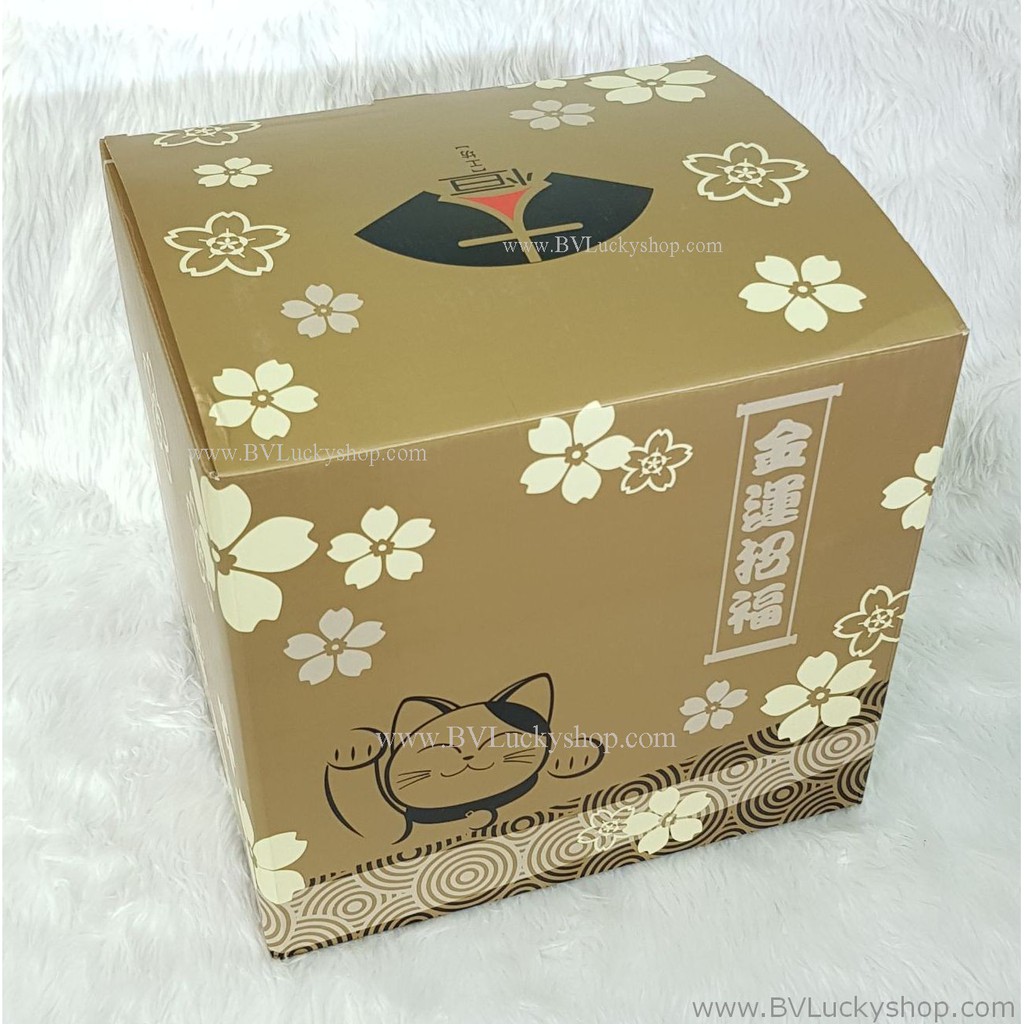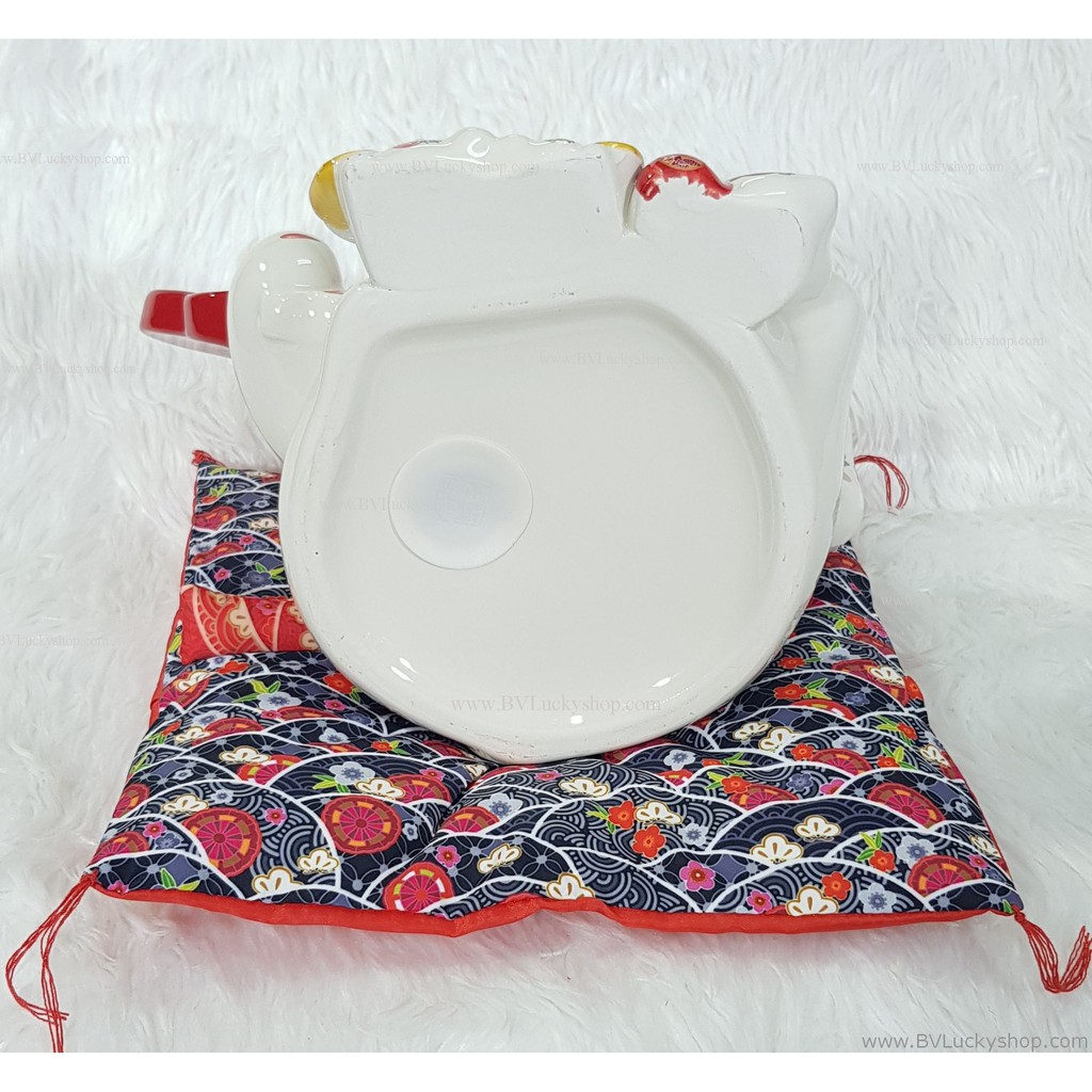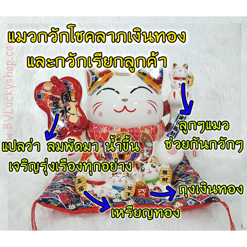 แมวกวัก แมวนำโชค ครอบครัวแมว สูง 8 นิ้ว ถือพัด -เซรามิค [86686]