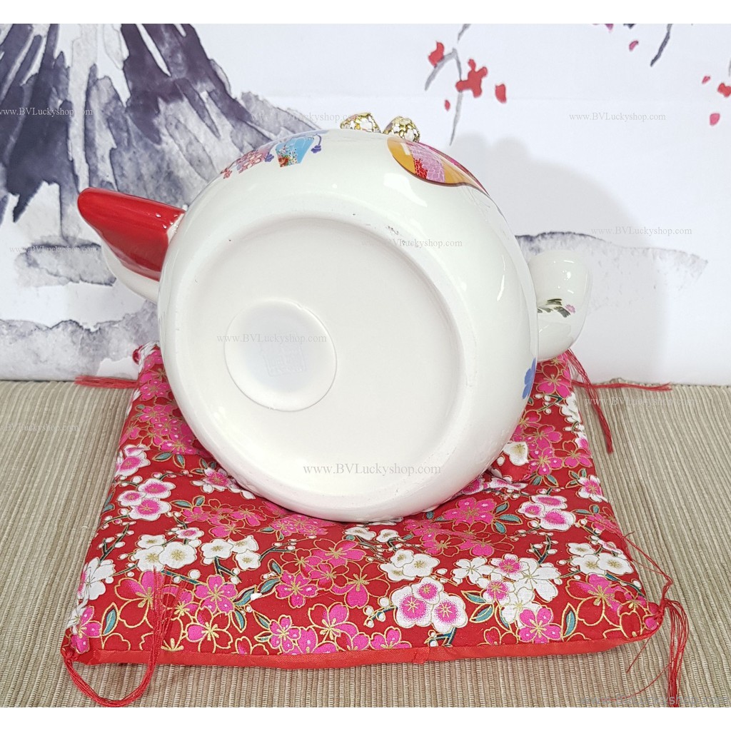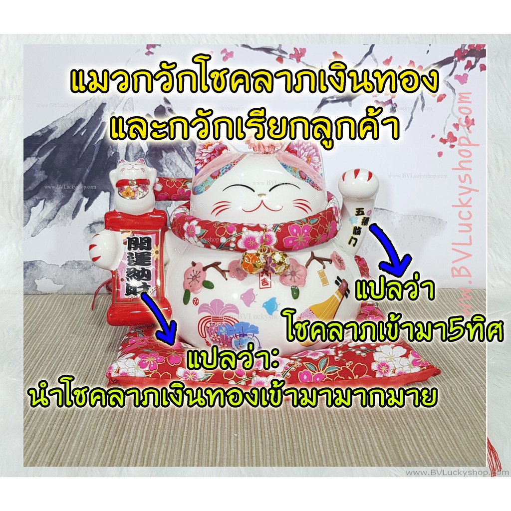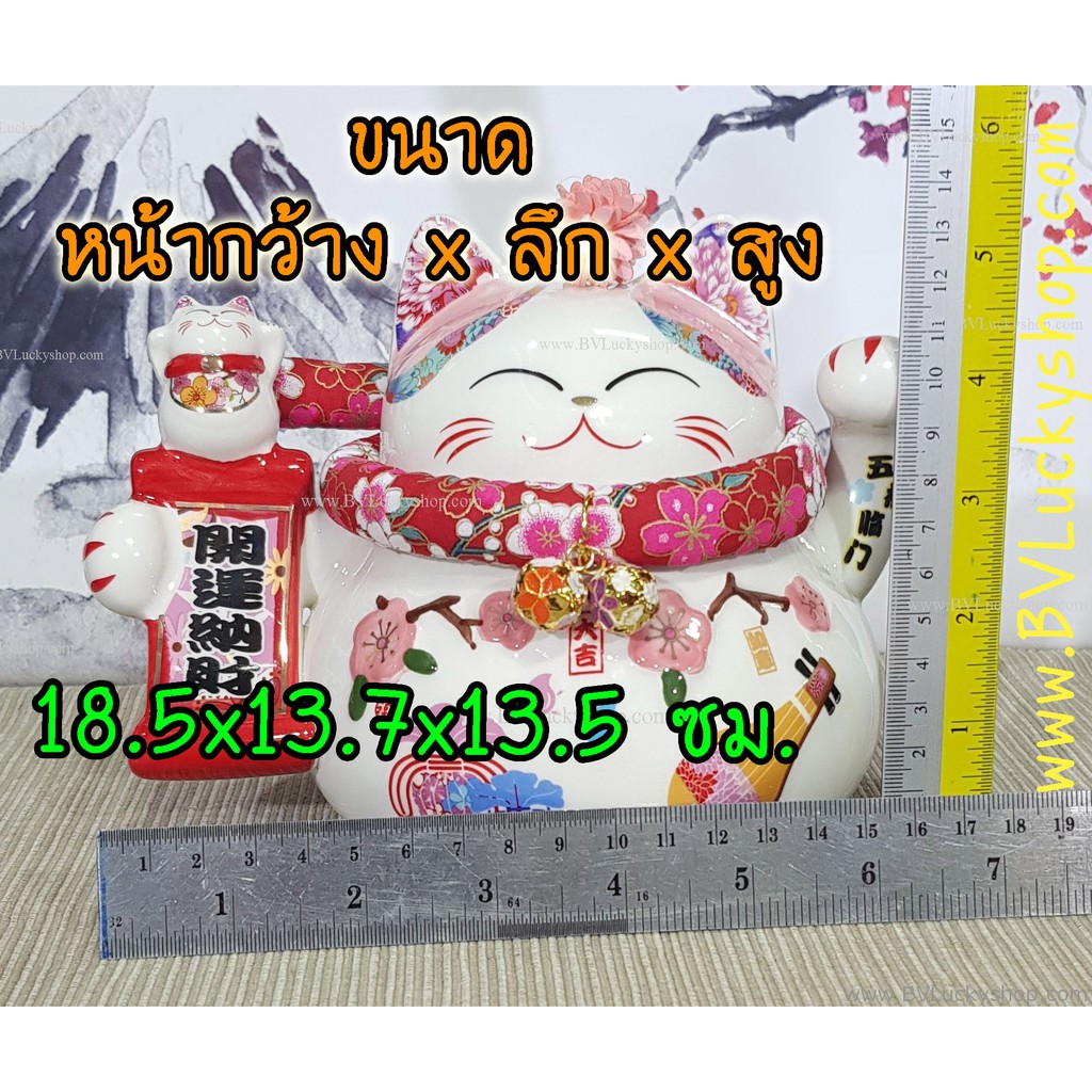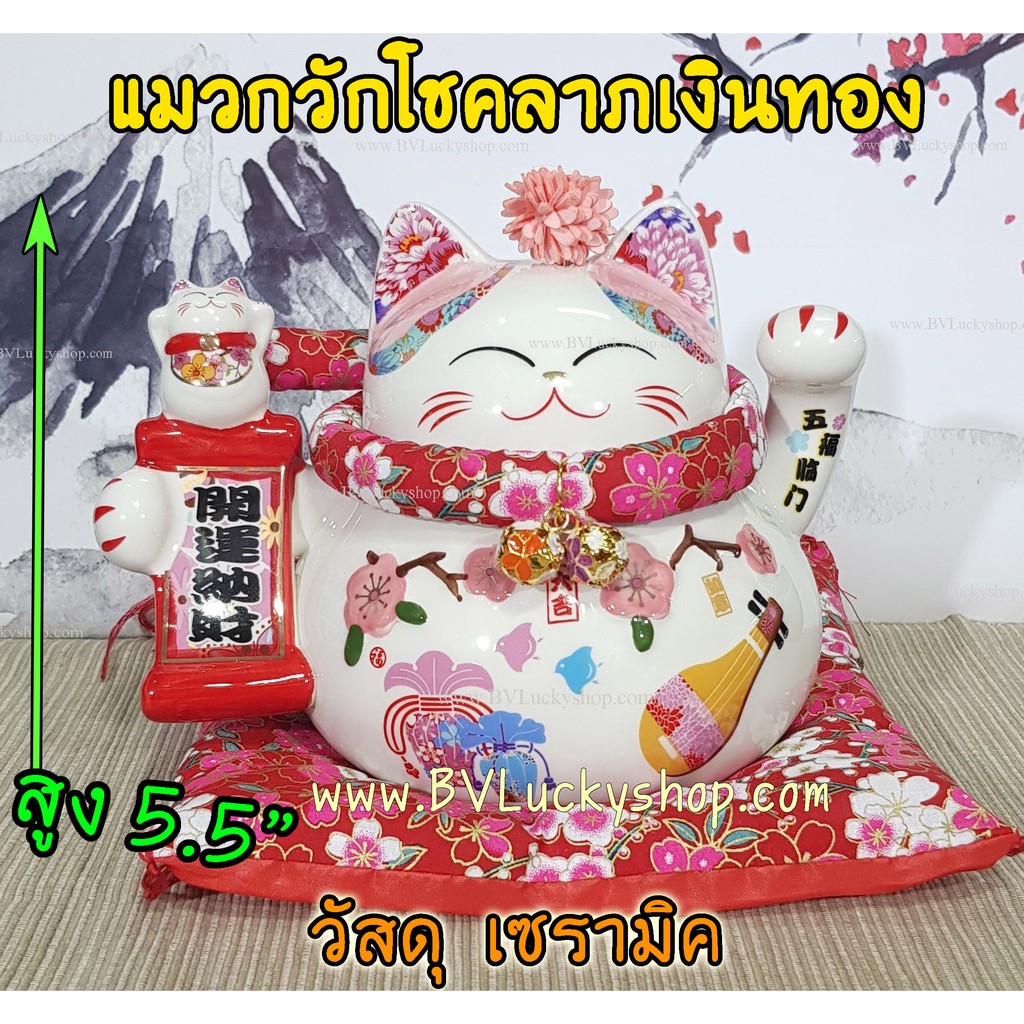 แมวกวัก แมวนำโชค สูง 5.5 นิ้ว ถือป้ายอวยพร -เซรามิค [86560]