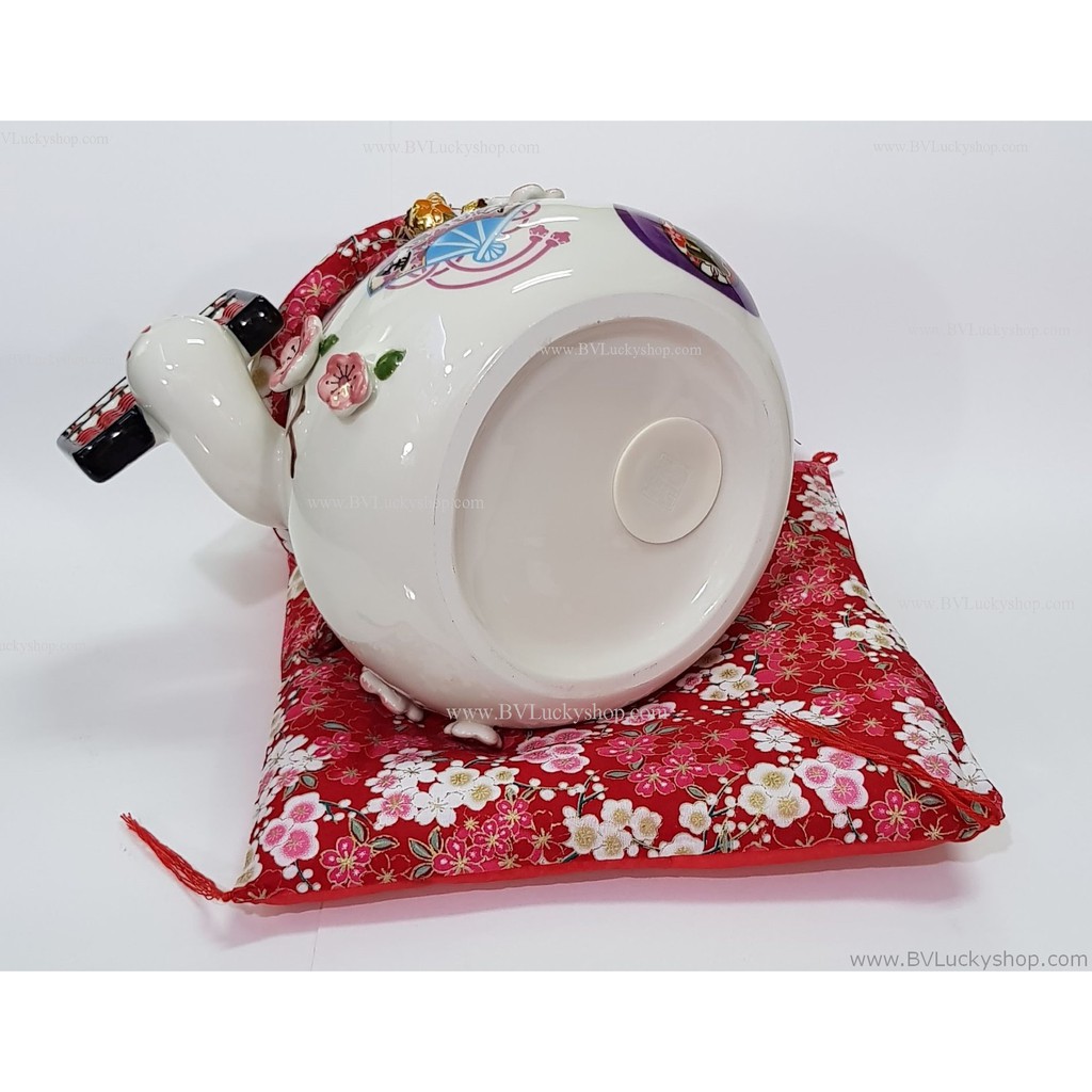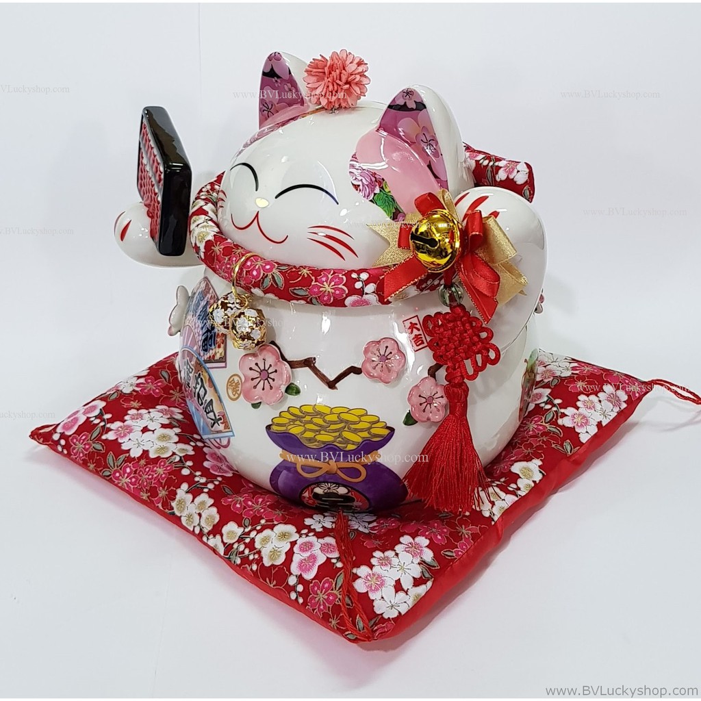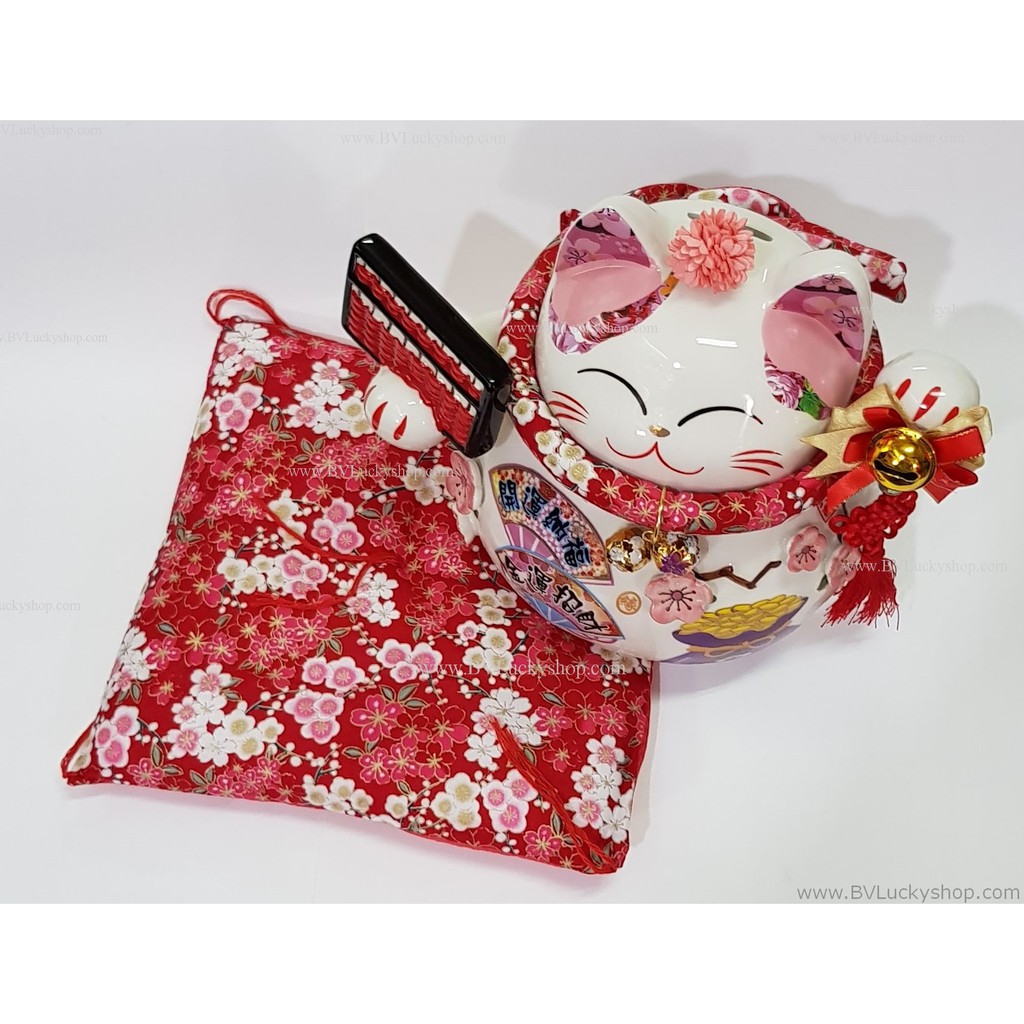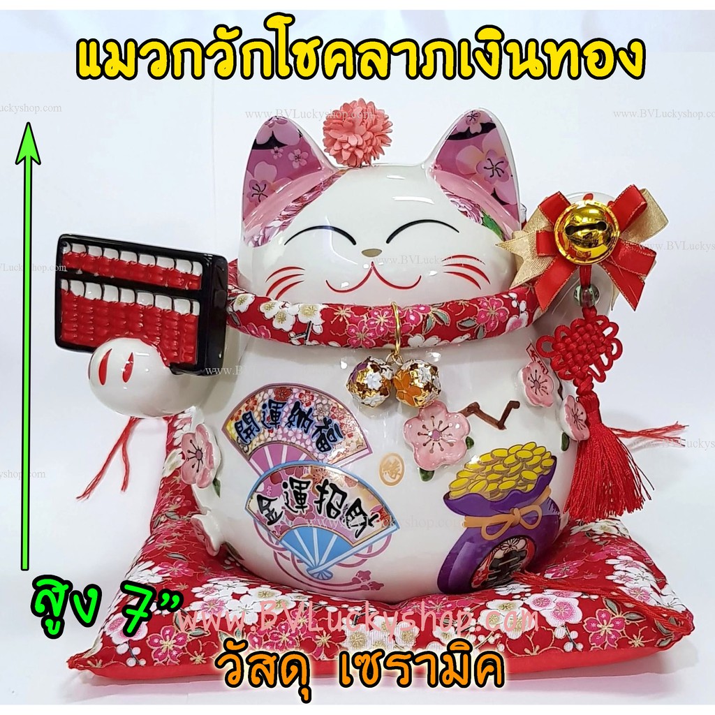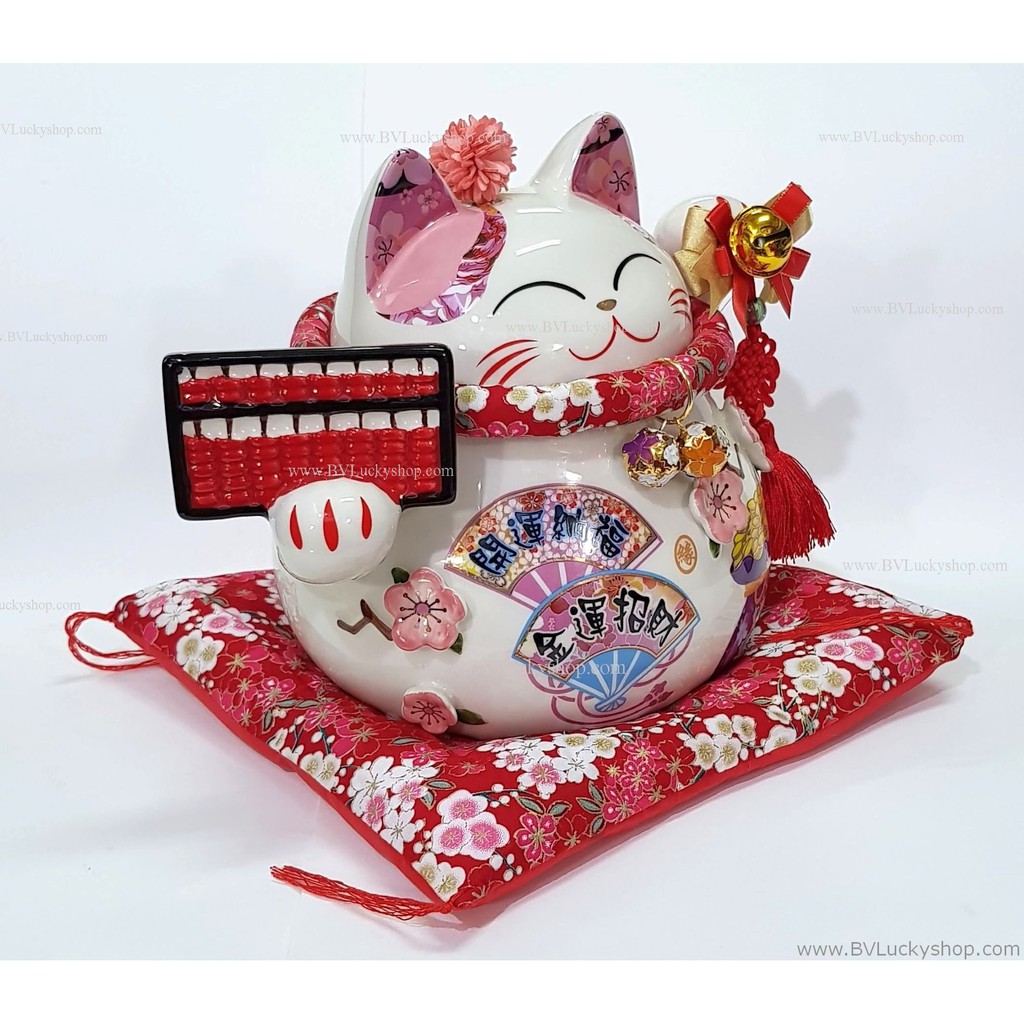 แมวกวัก แมวนำโชค สูง 7 นิ้ว ถือลูกคิด คิดเงินคิดทองเข้ามา - เซรามิค [86883]