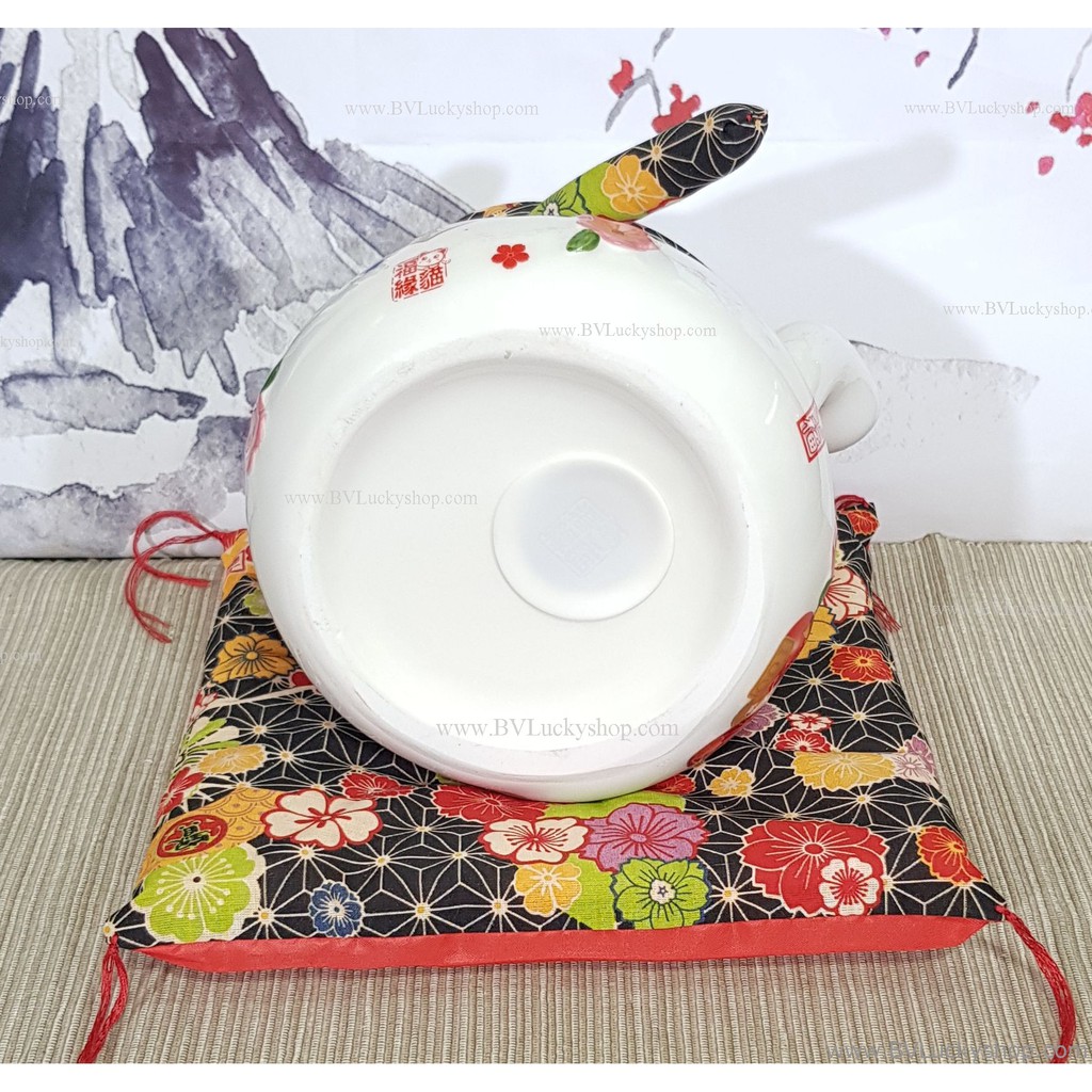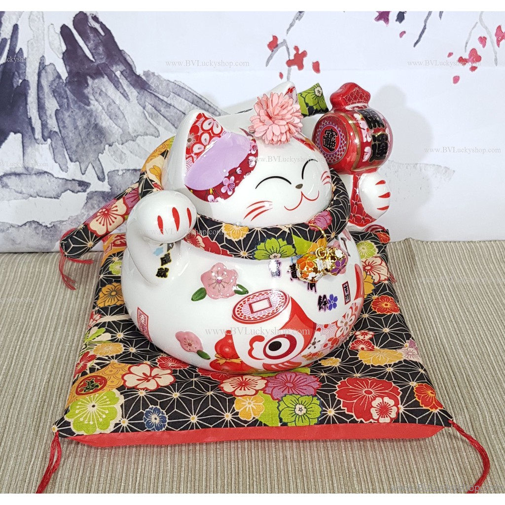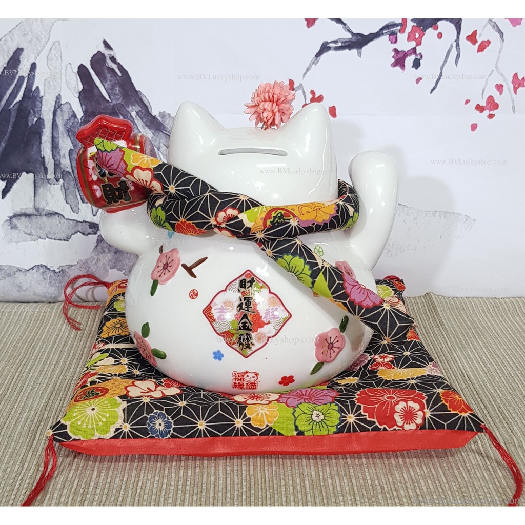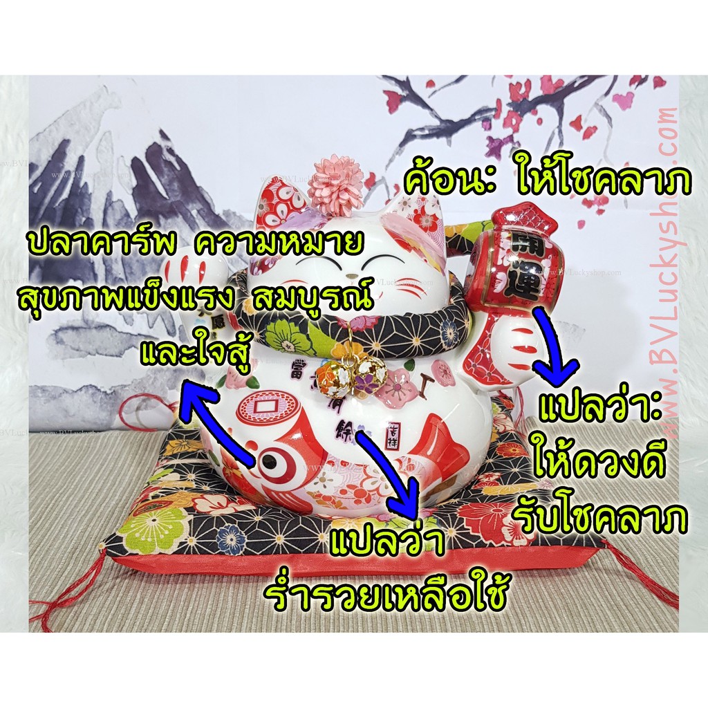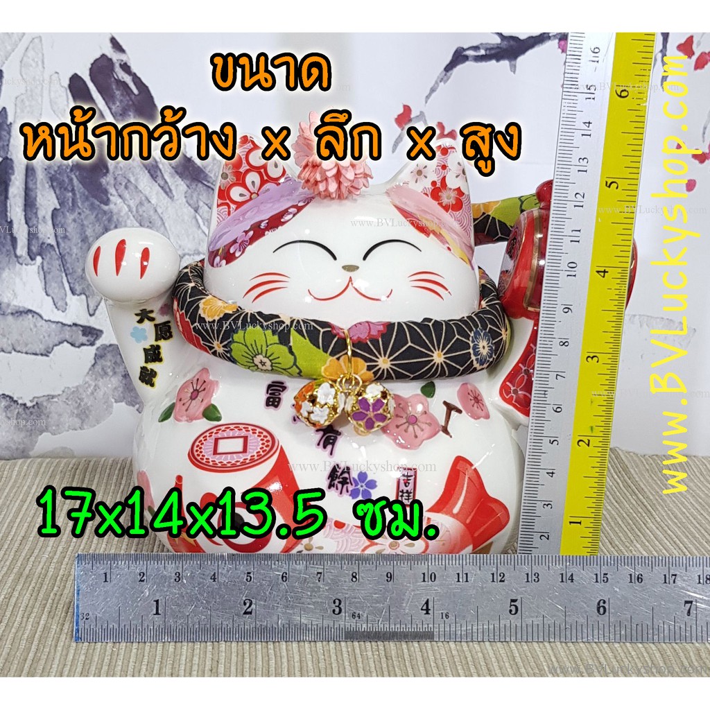 แมวกวัก แมวนำโชค สูง 5.5 นิ้ว ถือค้อนให้โชคลาภ -เซรามิค [86563]