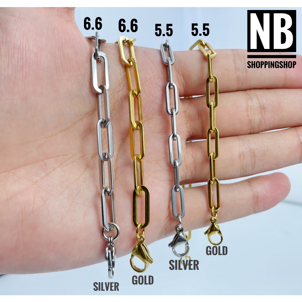 226 สร้อยข้อมือสแตนเลสaแท้ กว้าง5.5 สีGold และสี silver ตะขอก้ามปู เลสแท้ไม่ลอกไม่ดำใสติดตัวหรือใส่อาบน้ำได้ งานเกรดA