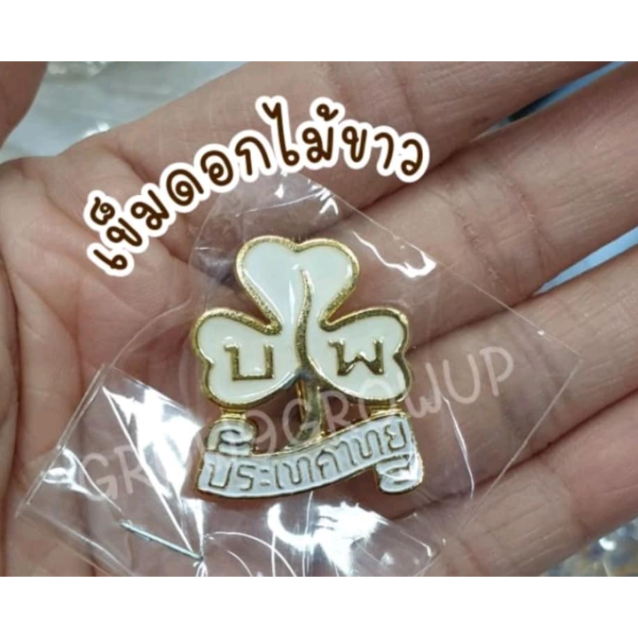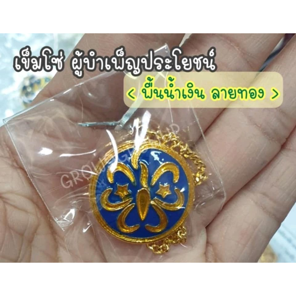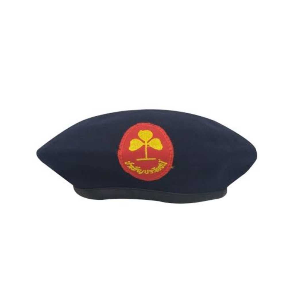 เครื่องแบบ ผู้บำเพ็ญประโยชน์ หมวก ผ้าพันคอ หัวเข็มขัด เข็มดอกไม้สีขาว เข็มโซ่สีน้ำเงิน ชุดเข็มขัด+สาย